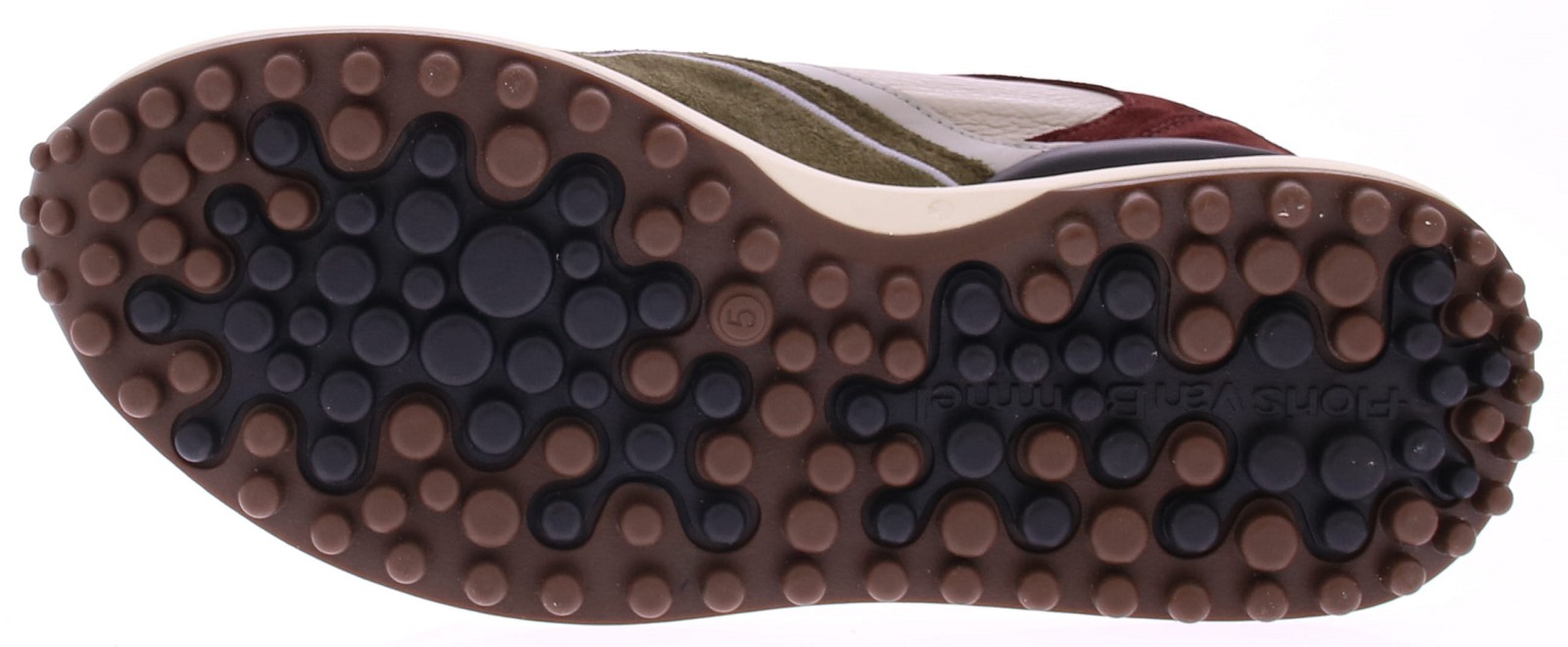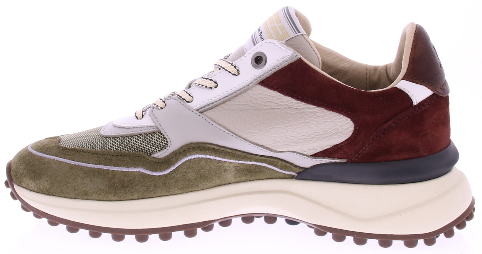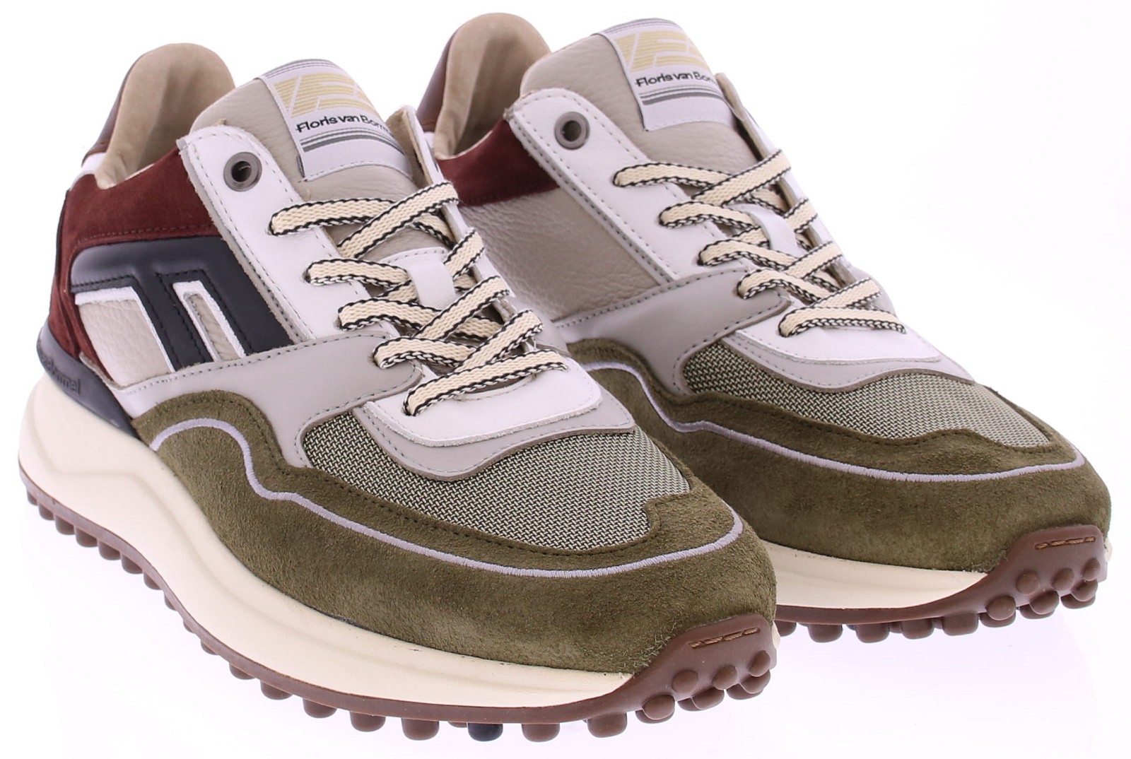 The Floris van Bommel Noppi 29.53 is a striking sneaker with a rugged outdoor vibe. This version combines green hues with dark brown suede, beige leather, and black accents for a layered, contemporary look. The thick rubber sole with a lug pattern not only provides extra grip but also gives the shoe its signature Noppi look. The combination of mesh, leather, and suede makes this sneaker breathable and stylish. Perfect for the man who appreciates comfort without compromising on style. Wear it casually with jeans or as a statement piece under a more formal outfit.