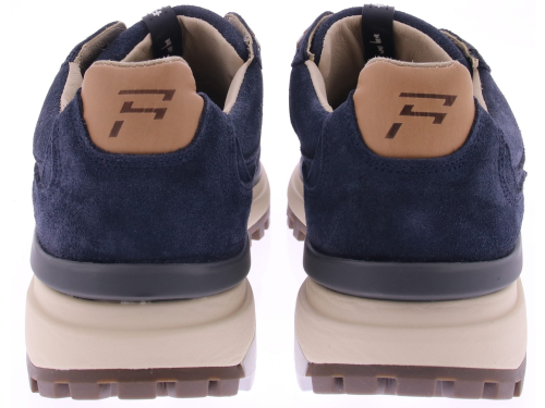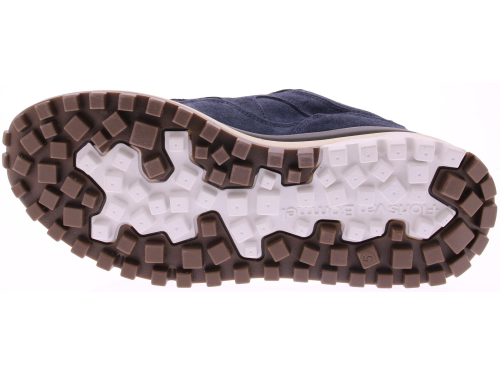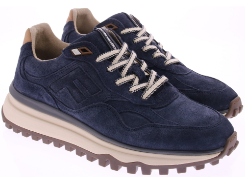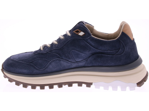 The Floris van Bommel Gripper 01.13 (SFM-10238.41-02) is a high-quality men's sneaker that perfectly combines style and functionality. Crafted from luxurious dark blue suede, this sneaker features refined details such as a subtly embossed logo on the side, a contrasting leather heel cap, and sporty laces. What truly sets this shoe apart is the robust rubber treaded sole with a sporty look and excellent grip. Thanks to the thick, cushioning midsole, the Gripper 01.13 offers exceptionally comfortable walking comfort, ideal for long days on the go. The shoe pairs effortlessly with jeans or chinos, but also looks stylish with a more formal outfit. With this Floris van Bommel sneaker, you choose top Dutch quality, craftsmanship, and contemporary flair – an absolute must-have for the modern man who values both comfort and style. Product features Model name: The Gripper 01.13 Item code: SFM-10238.41-02 Brand: Floris van Bommel Upper material: Dark blue suede Lining: Leather and textile Insole: Removable leather sole Sole type: Rubber profile sole with thick, cushioning midsole Closure: Lace-up closure with waxed laces Fit: Normal Style: Sporty & casual Made in: Portugal