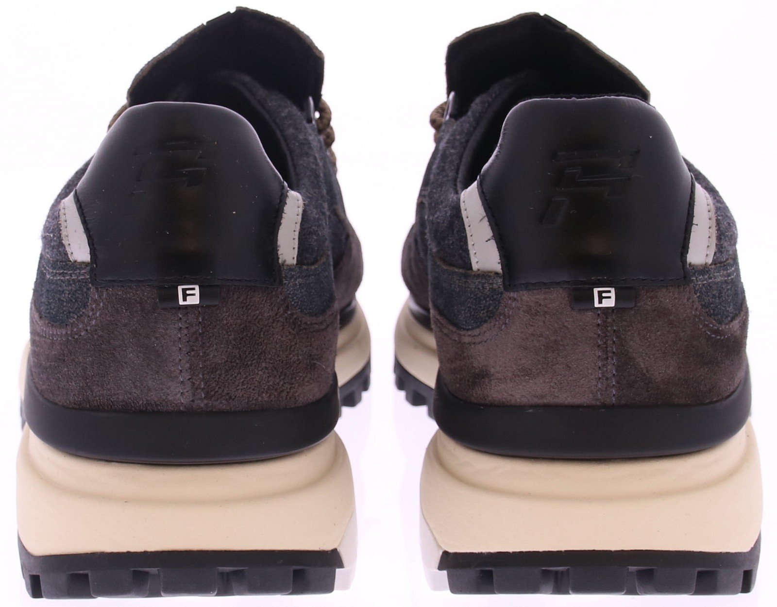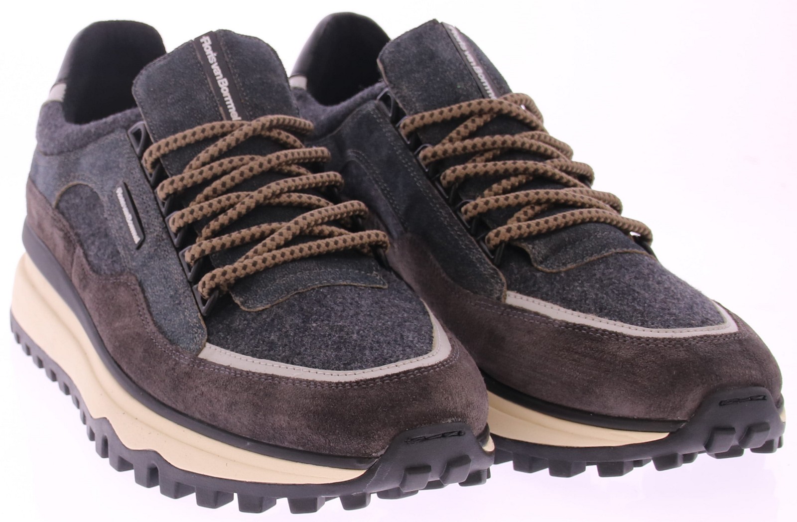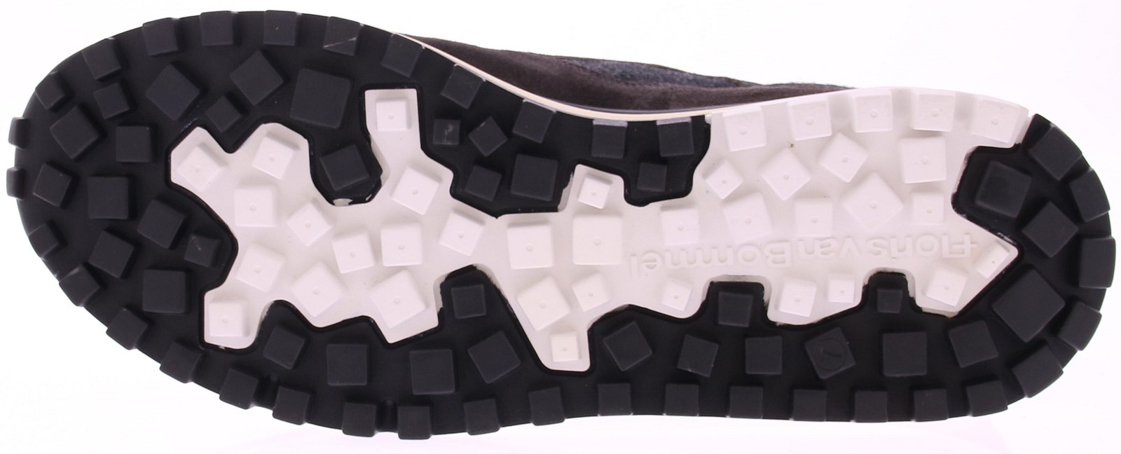 The Floris van Bommel Gripper 03.00 is a rugged, outdoor-inspired sneaker with a robust look and refined finish. The upper is made of dark brown suede combined with gray wool accents. The thick, layered sole with a coarse tread provides excellent grip and gives the shoe a powerful look. The wide laces and subtle Floris van Bommel logo complete the design. This sneaker is designed for comfort and style: ideal for everyday wear or an adventurous city trip. A perfect balance between casual luxury and practical design – exactly what you expect from Floris van Bommel.