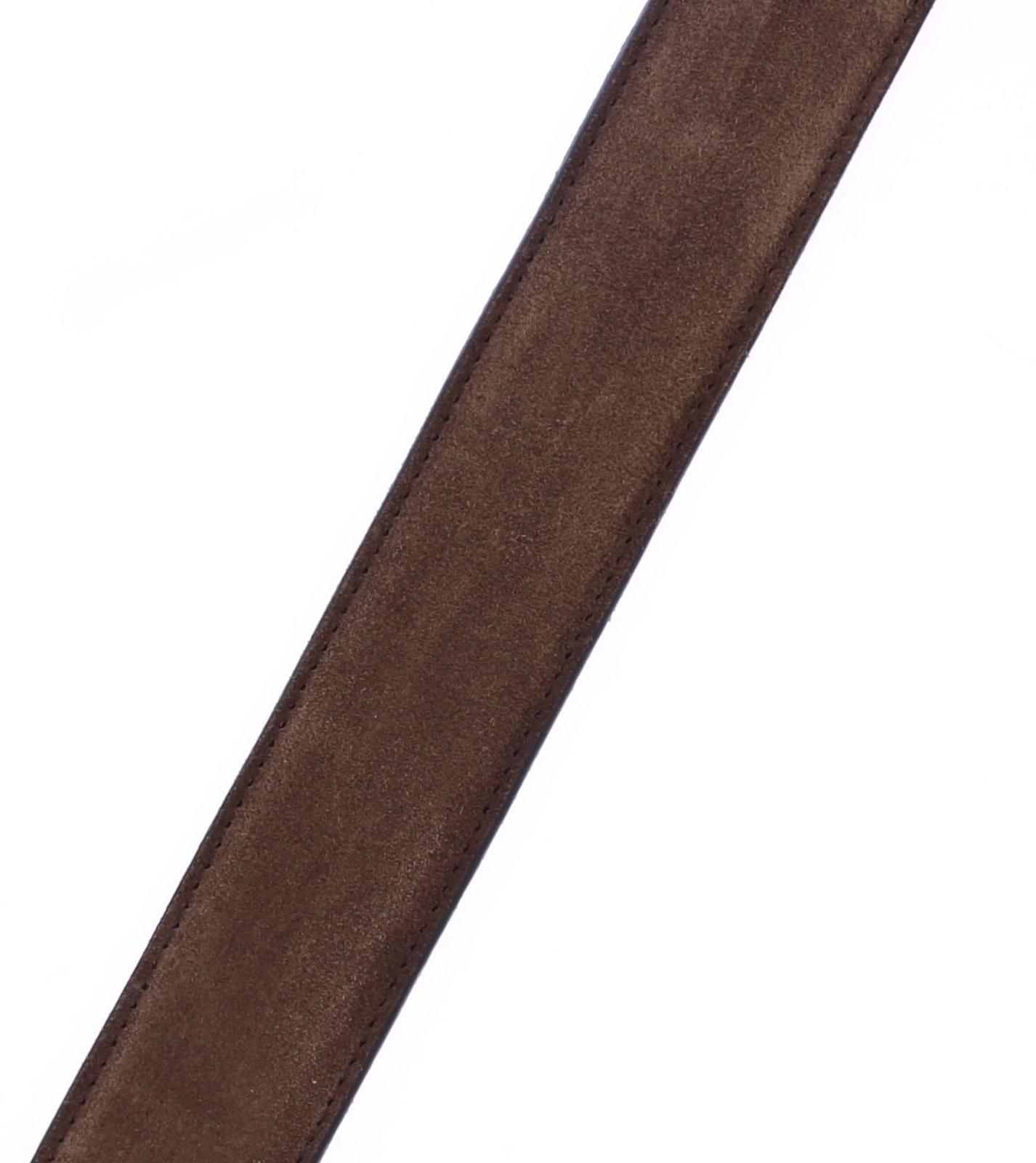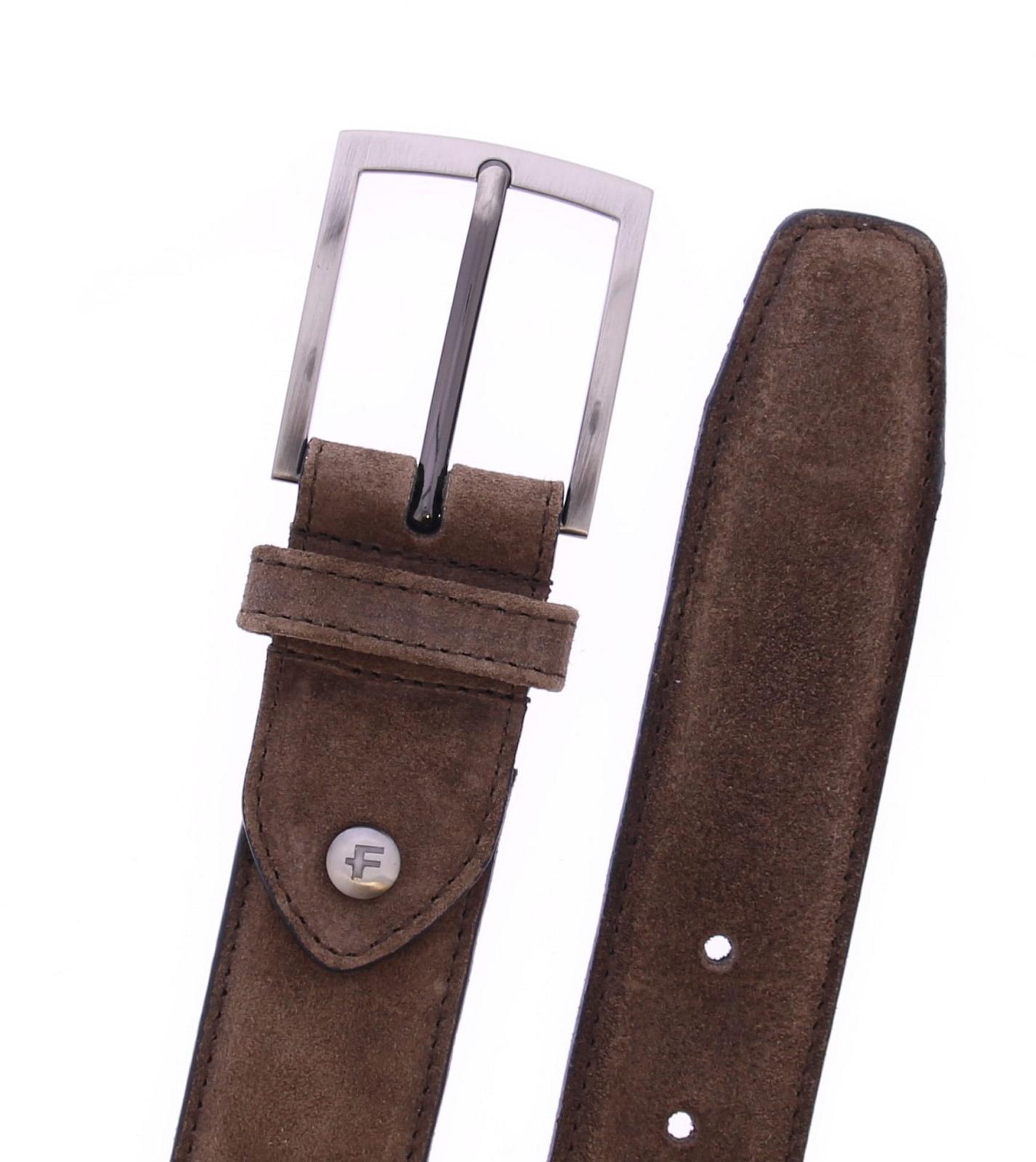 Cognac suede men's belt by Floris van Bommel, made of suede with a leather lining. The belt can be shortened at the buckle. Its length is 115cm. The belt matches a shoe from our collection, item number 44267.