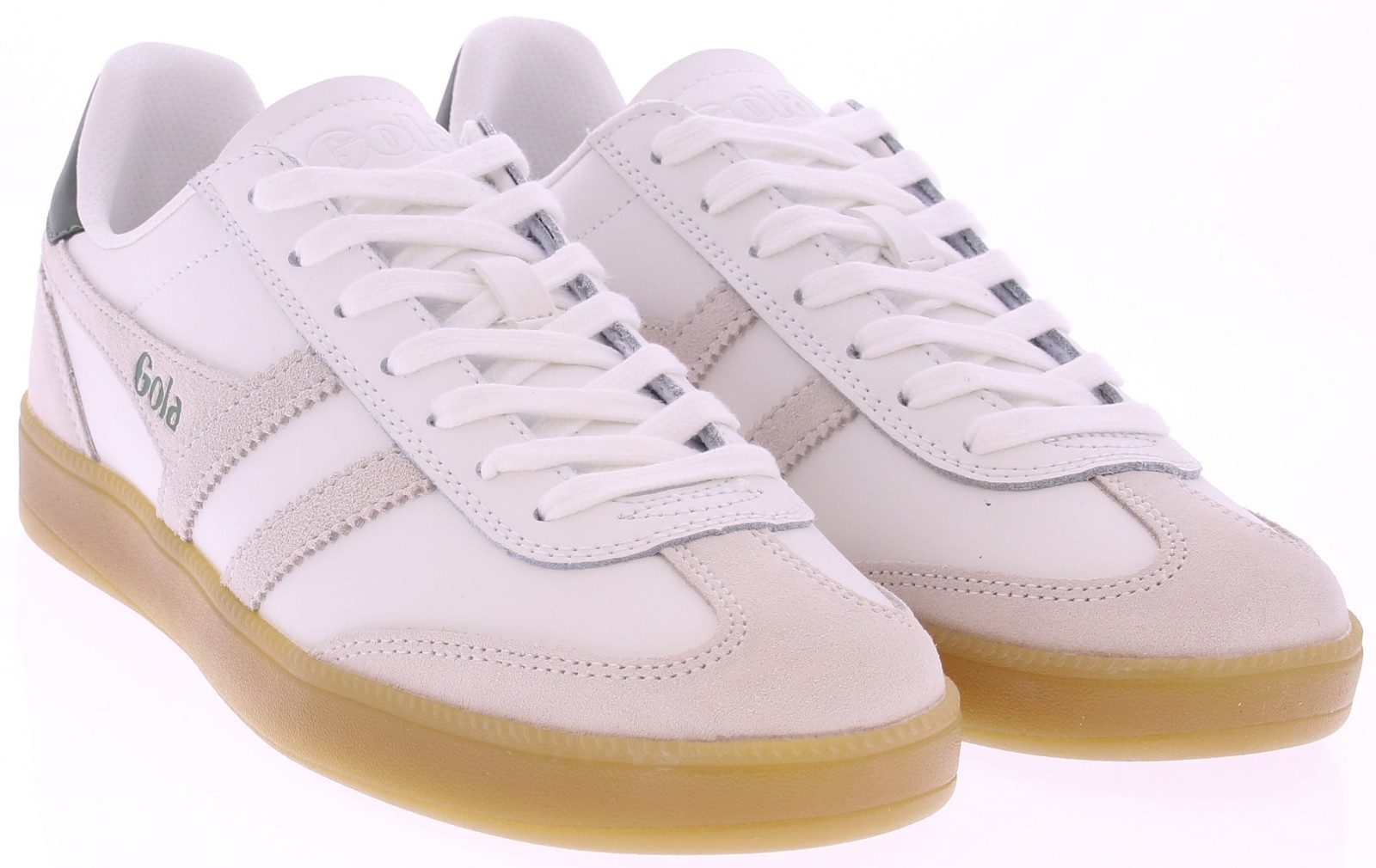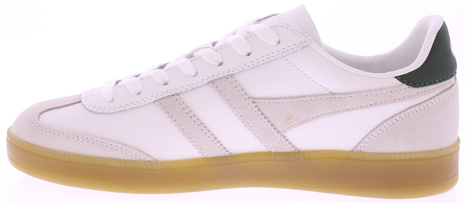 White leather men's sneakers from Gola. This retro Viper features soft suede accents and a fresh combination of white and green for a sporty-classic look. The rubber sole offers comfortable cushioning and daily grip, while the leather upper ensures durable wear. A perfect choice for men looking for a timeless and versatile sneaker. Discover other Gola men's sneakers at Klijsen.