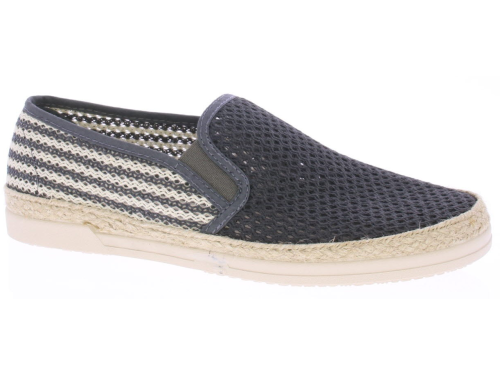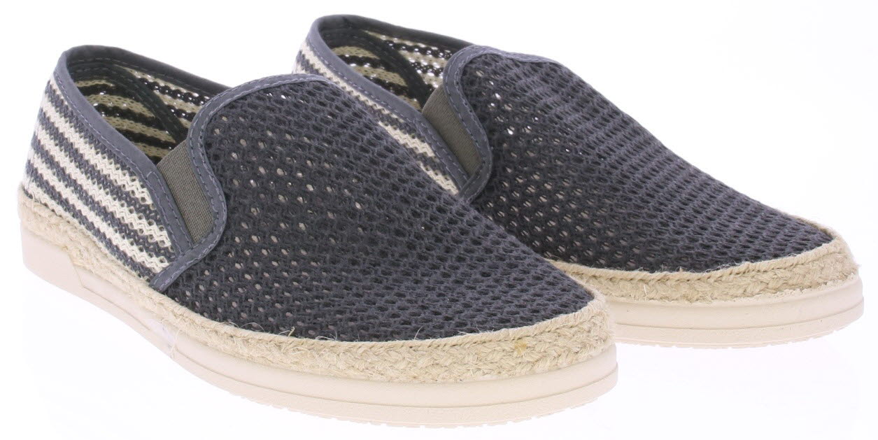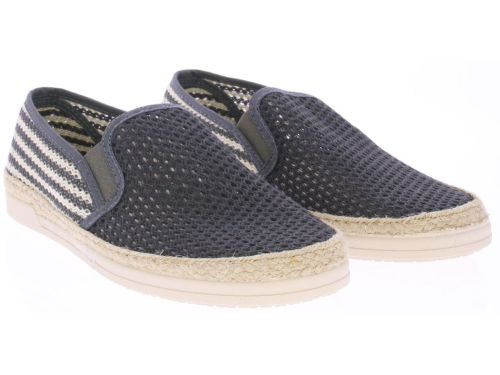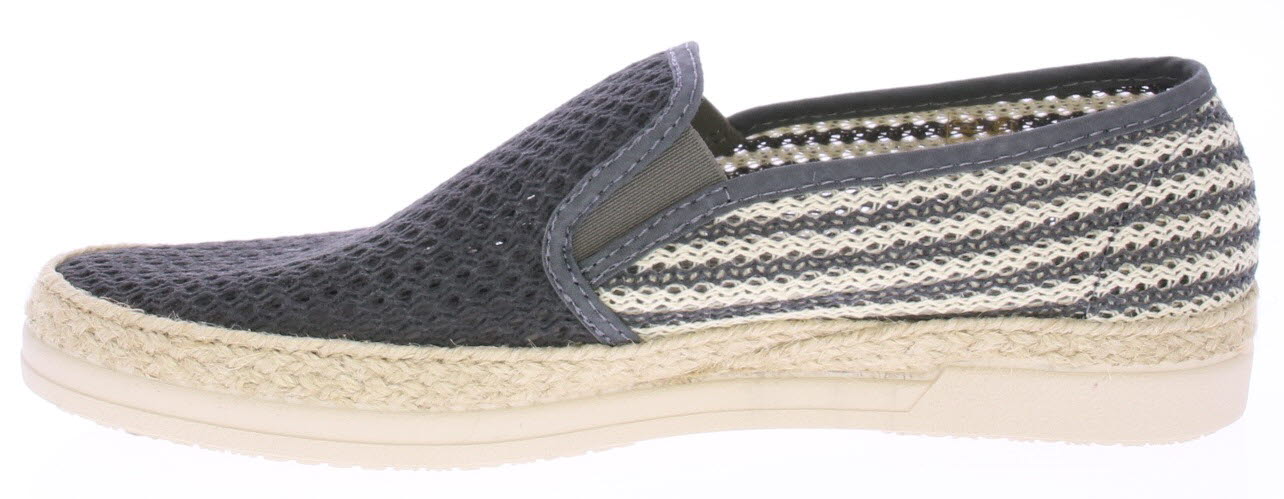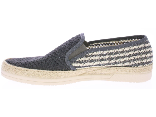 Grey-white fabric men's loafer from Cypres. The upper of the shoe is braided and perforated, there is a rope edge along the sole and the sole itself is made of rubber. This loafer is nice and light and airy for the summer.