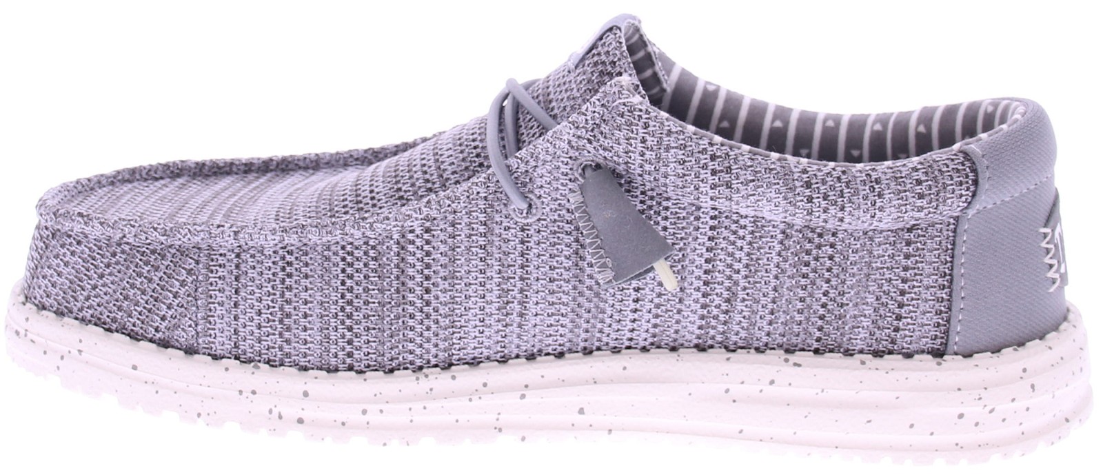 Grey textile men's loafer by Hey Dude. This Wally Stretch Sox is crafted from supple and elastic knit material that comfortably molds to the foot. The ultra-light speckle sole offers flexible wearing comfort, while the soft lining provides an airy and relaxed feel. Thanks to the removable footbed, you enjoy extra support and easy care. An ideal choice for everyday comfort in a modern, casual style. Also discover the other men's loafers from Hey Dude at Klijsen.