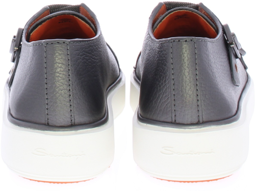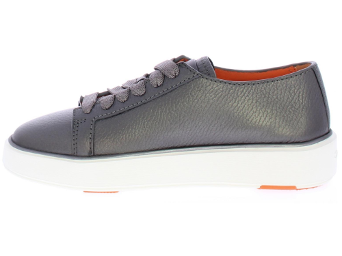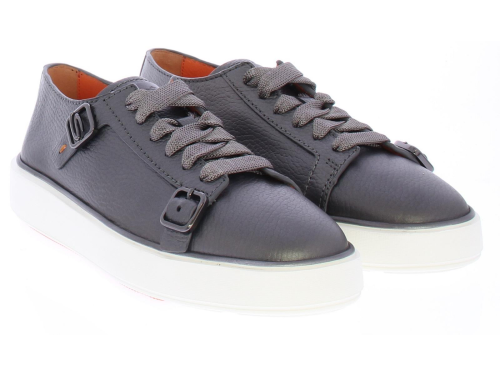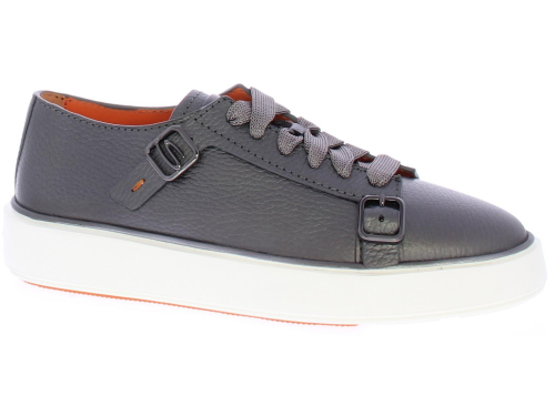 Metallic grey leather women's sneaker by Santoni. This sneaker comes from the "clean icon" line. The beautiful calf leather has a little bit of structure, 2 matt silver buckles, the top one with an S logo. The sneaker has a removable footbed.
