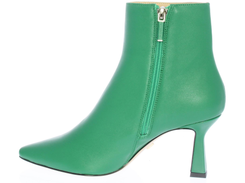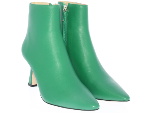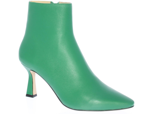 Green leather women's ankle boot by Lola Cruz. The boot has a straight shaft with a zipper. Has a pointed toe and comes on a queenie heel of 7 cm.