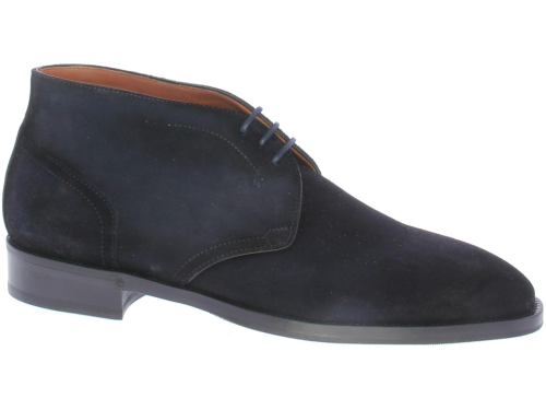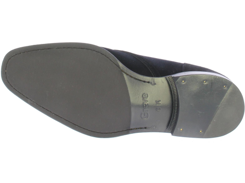 Dark blue suede men's lace-up shoe by Greve. This shoe is made in an extra wide K-last. The shoe has a leather sole with rubber insert on the wear area. The shoe is leather lined and the insole is removable.