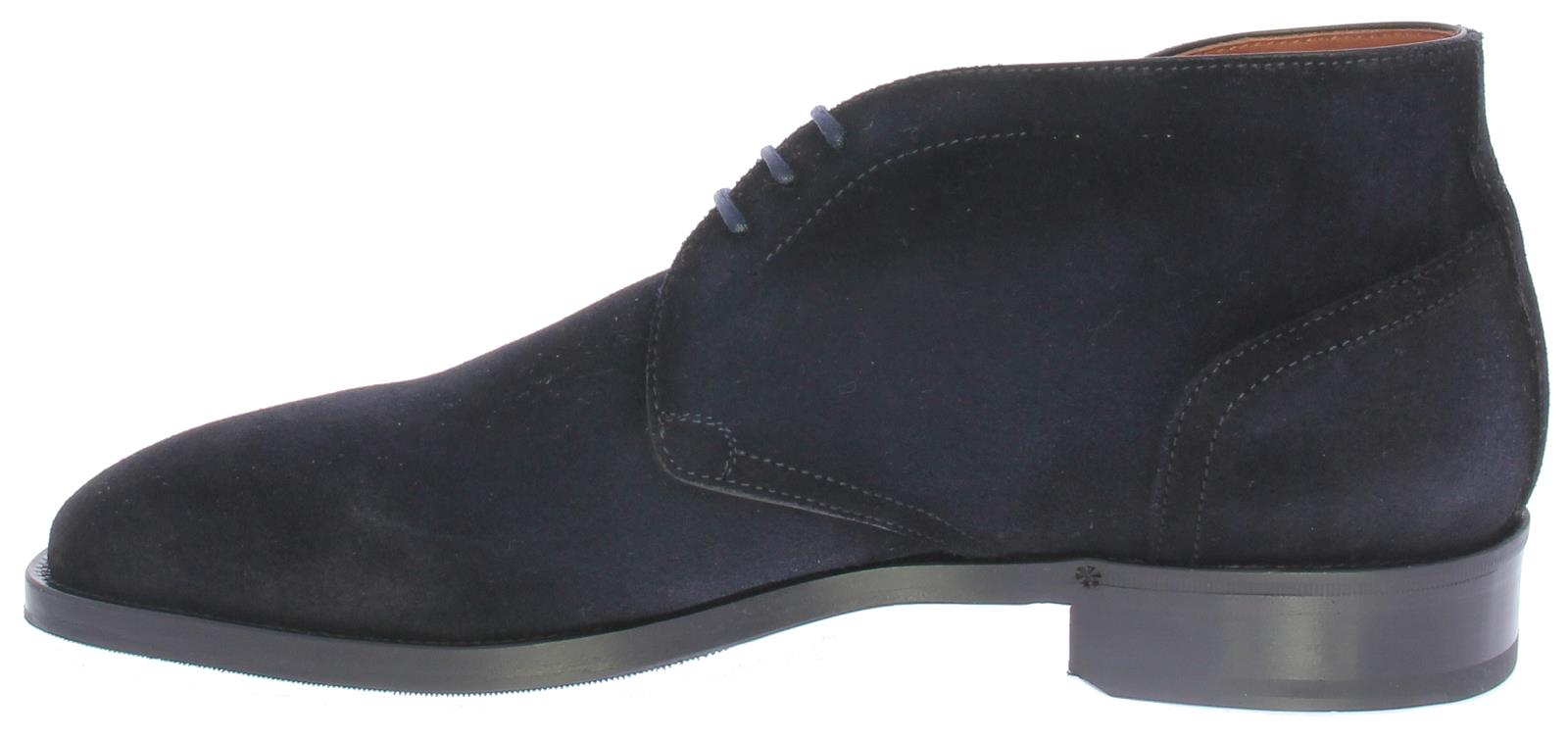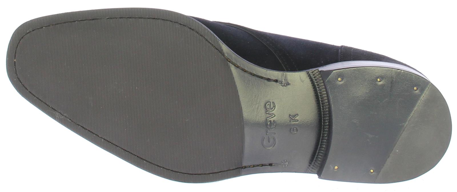 Dark blue suede men's lace-up shoe by Greve. This shoe is made in an extra wide K-last. The shoe has a leather sole with rubber insert on the wear area. The shoe is leather lined and the insole is removable.