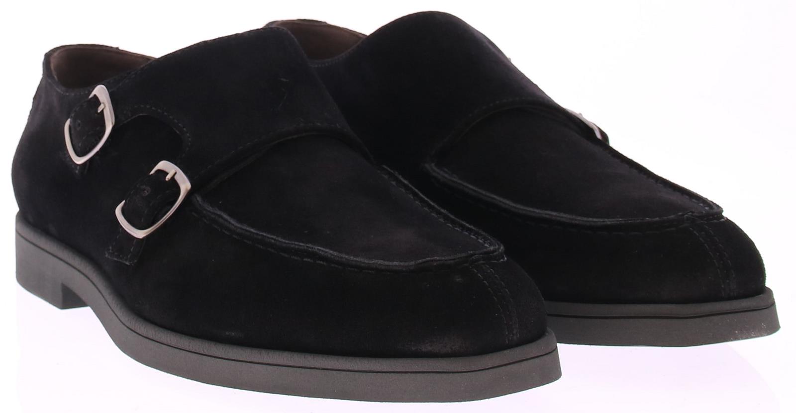 Men's double buckle shoe from Greve with a sporty rubber sole in black suede. The sole is gray lightweight rubber and the lining is leather.