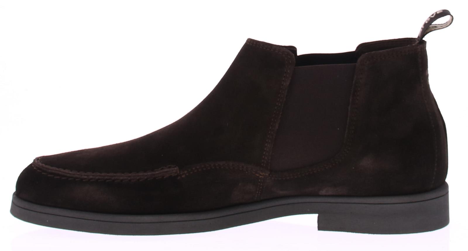 Men's Chelsea boots with a sporty rubber sole in brown suede. The sole is gray lightweight rubber and the lining is leather.