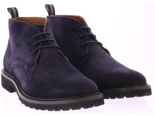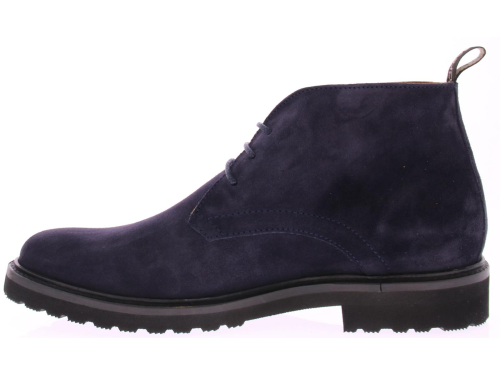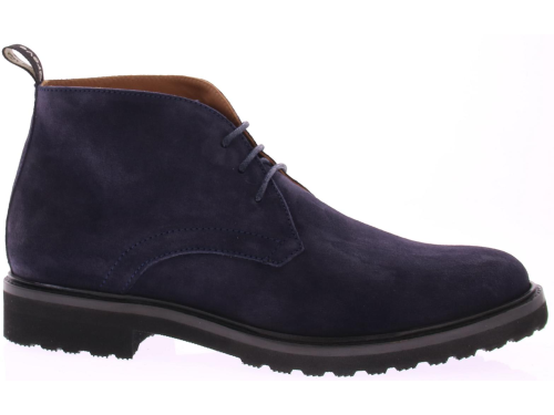 Suede lace-up boot on a rubber sole with a dark blue suede lining. The width is H and the footbed is removable.