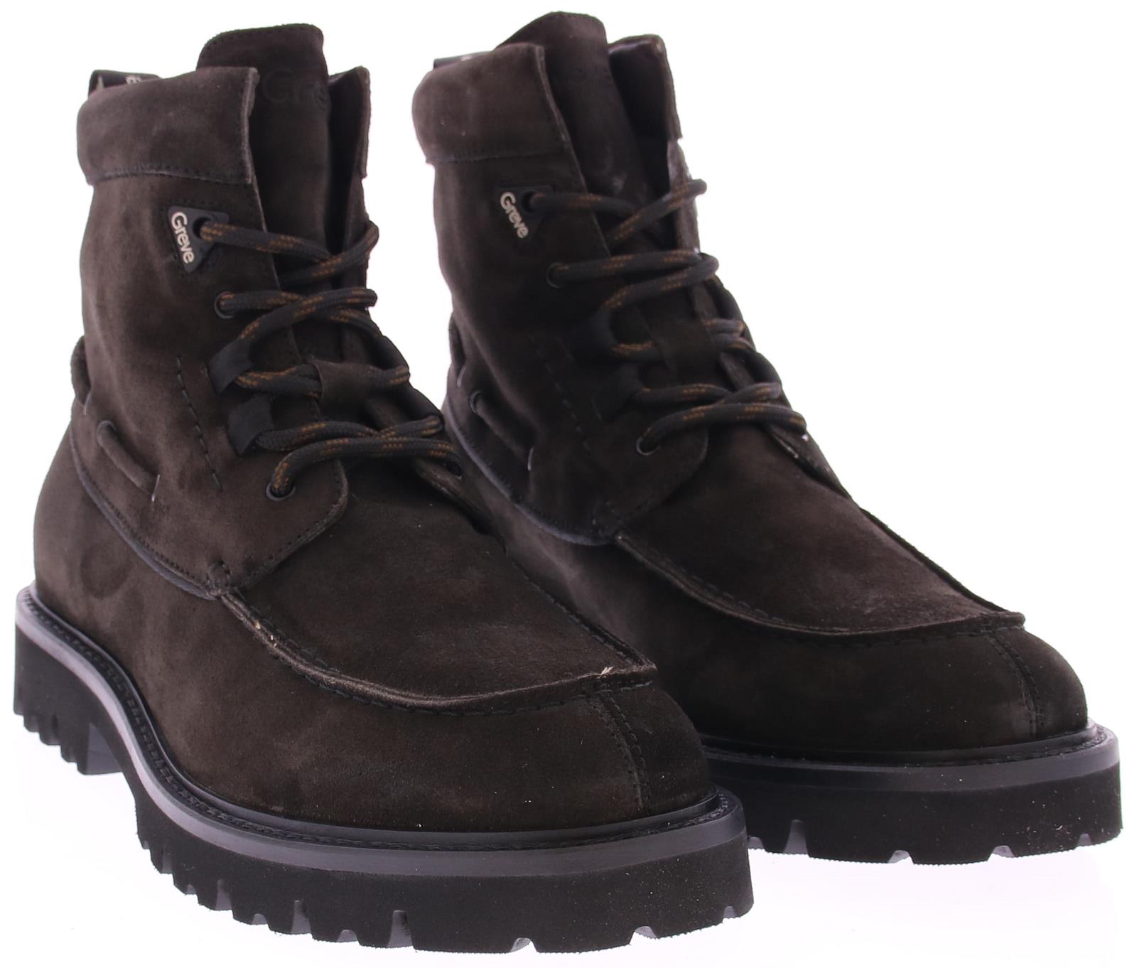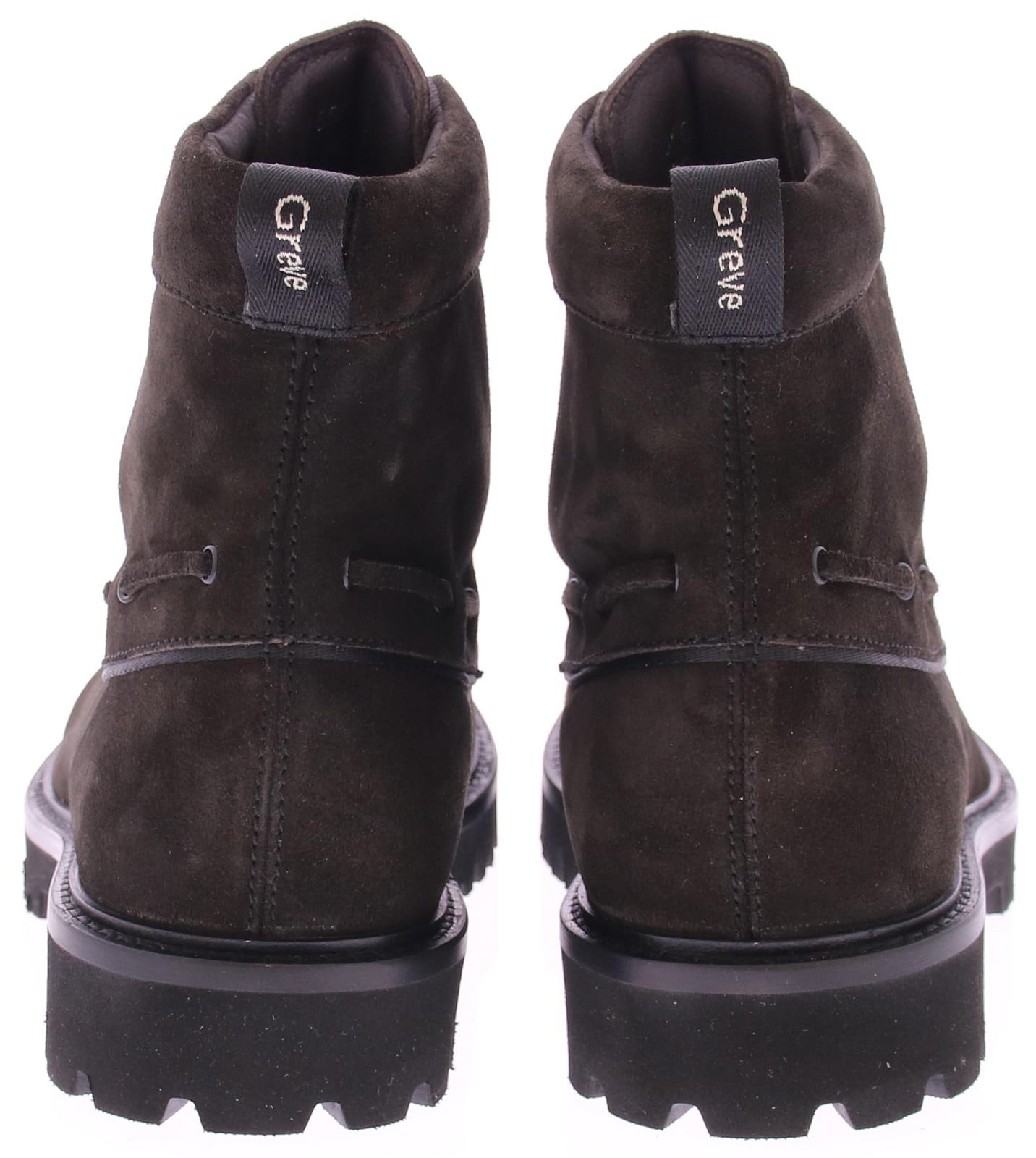 dark brown suede men's lace-up boots by Greve. The boots are made of high-quality dark brown suede, which provides a luxurious look and a silky-soft finish.