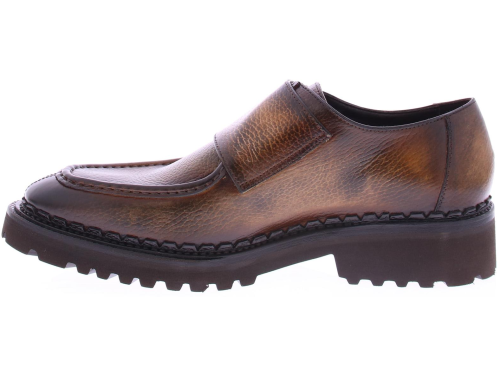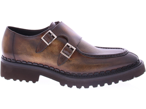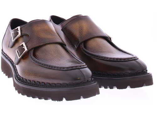 Dark brown leather men's double buckle shoe by Harris. The dark brown men's buckle shoes are finished with a double buckle on the instep and are provided with a sturdy rubber outsole. These shoes can be worn both casual and formal.