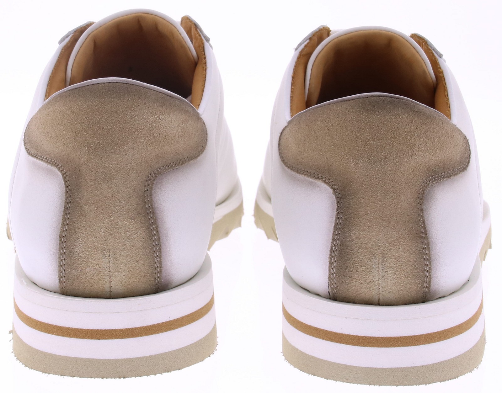 Off-white leather men's sneakers from Harris. These luxurious sneakers are crafted from high-quality smooth leather with a refined off-white hue and a contrasting suede heel accent. The gold-tone eyelets and signature Harris logo give the design an exclusive look. The lace-up closure and sturdy rubber sole ensure comfort and a stable fit, suitable for both casual and formal outfits. Discover other Harris men's sneakers at Klijsen.