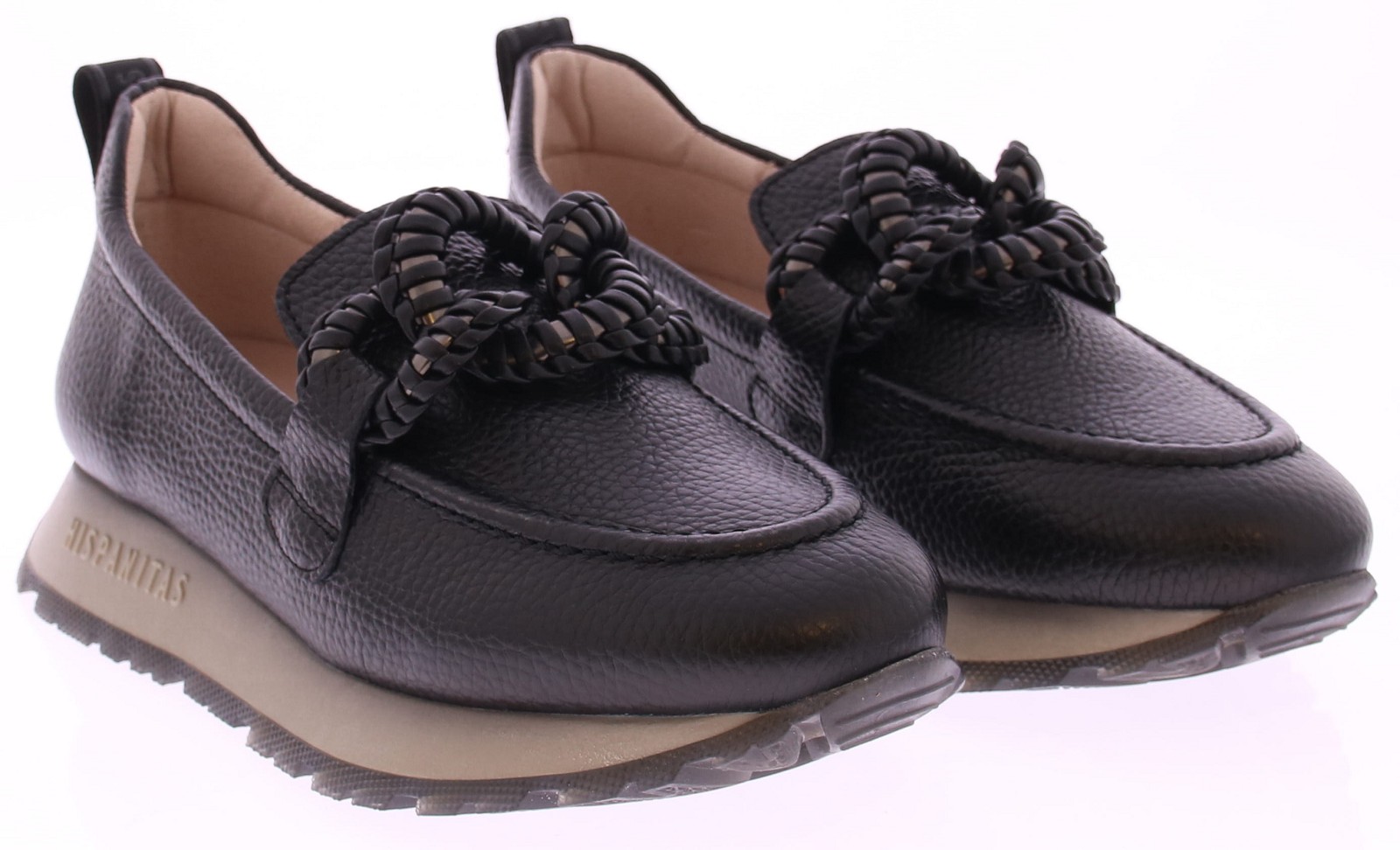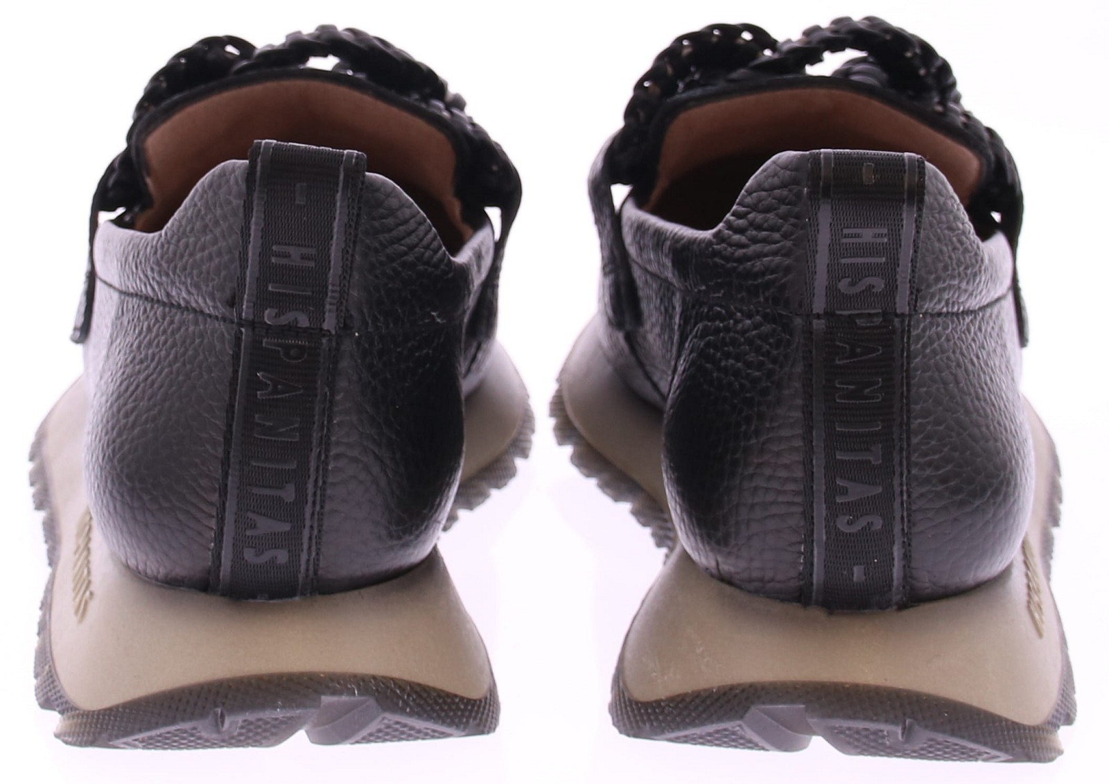 Black leather women's slip-on from Hispanitas. This Kansas slip-on features a crocheted instep. Thanks to its slip-on design, it's easy to put on and take off – ideal for everyday wear. This sneaker has a removable insole. The rubber sole with a fine tread offers excellent grip and cushioning, ensuring all-day comfort and stability.