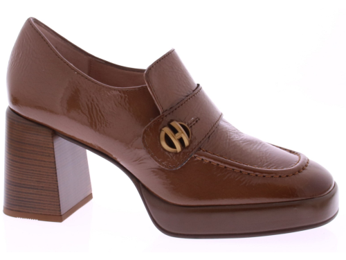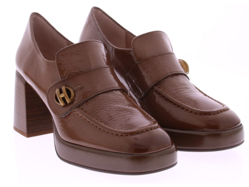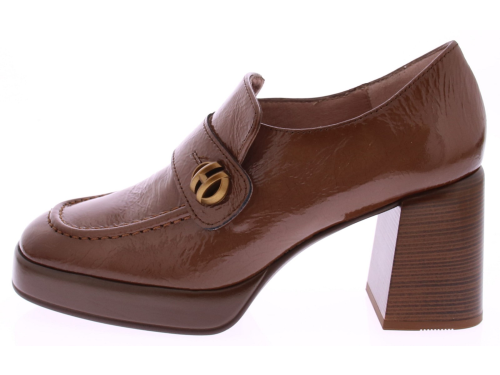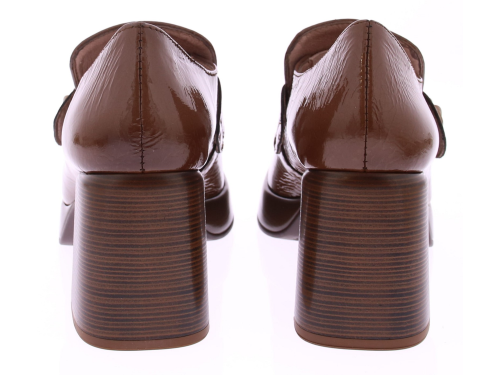 This mid-brown patent leather women's slip-on from Hispanitas is the perfect choice for women seeking style and comfort. The glossy patent leather gives the pump a luxurious look, while the 2cm platform sole and 7cm block heel provide the perfect balance of height and stability. The rubber sole offers excellent grip, allowing you to walk confidently all day long. This shoe is versatile enough to wear for both business and formal occasions, but can also easily be paired with casual outfits for a refined look.