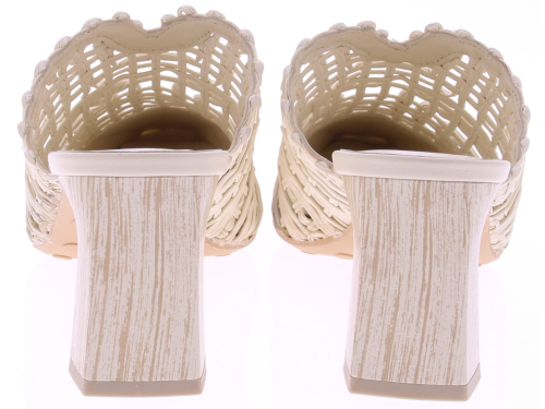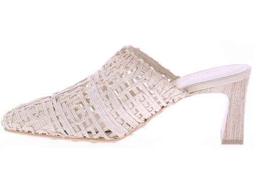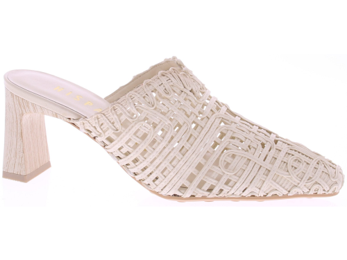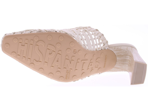 Cream-colored braided women's mules from Hispanitas, model Amapola. These elegant mules are crafted from a decorative braided material with an open structure, creating a light and summery look. The open heel and stable 6 cm heel give the style a feminine look and are comfortable to wear. A stylish choice with both a dress and modern trousers. Discover other Hispanitas women's mules at Klijsen.