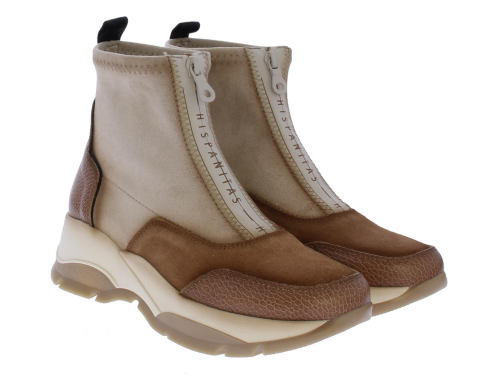 Nude/beige leather/suede women's sneaker boot by Hispanitas. With zipper on the instep and soft removable footbed.