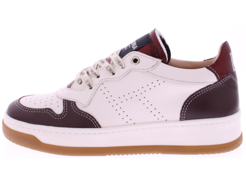 Kirruna women's white leather sneakers. These Kirruna women's white leather sneakers are a stylish and versatile addition to your wardrobe. Crafted from white leather, they feature subtle burgundy details. The lightweight, cushioned sole provides ultimate comfort while walking. The sneakers feature tonal laces with the brand name. Perfect for both casual outfits and a more formal, sporty-chic style. An ideal choice for those looking for a comfortable and timeless women's sneaker with a modern twist.