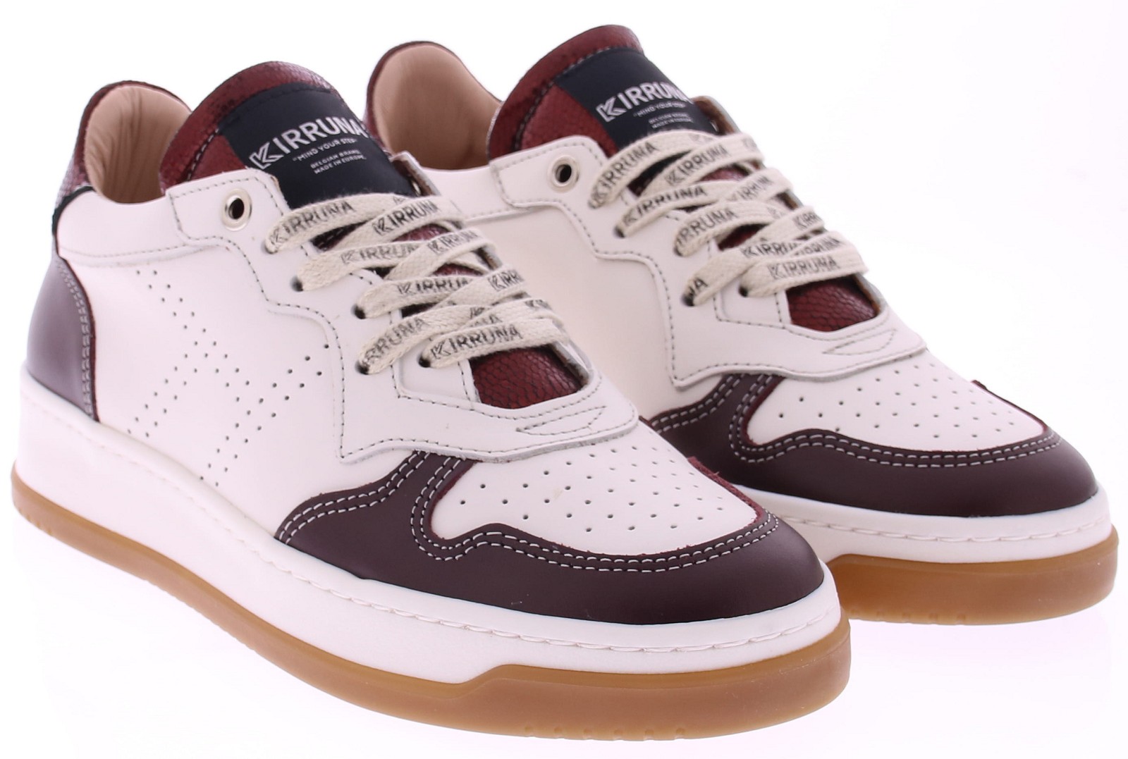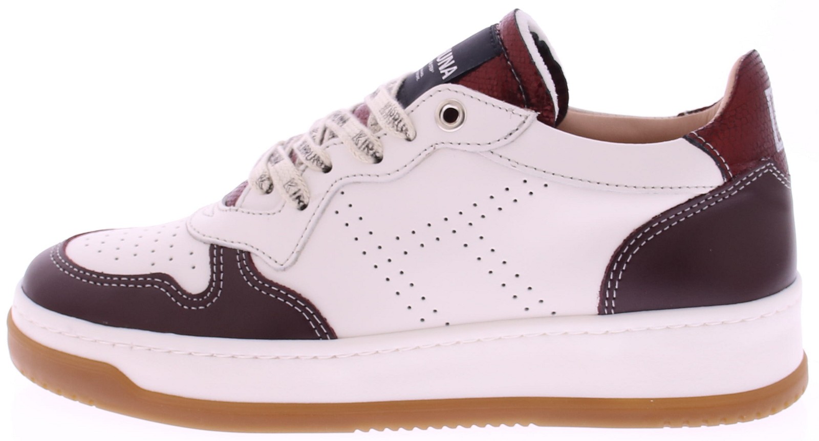 Kirruna women's white leather sneakers. These Kirruna women's white leather sneakers are a stylish and versatile addition to your wardrobe. Crafted from white leather, they feature subtle burgundy details. The lightweight, cushioned sole provides ultimate comfort while walking. The sneakers feature tonal laces with the brand name. Perfect for both casual outfits and a more formal, sporty-chic style. An ideal choice for those looking for a comfortable and timeless women's sneaker with a modern twist.