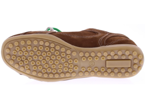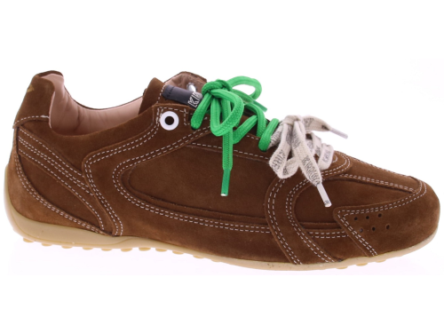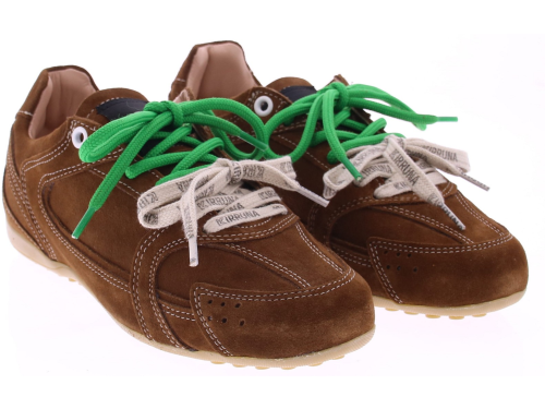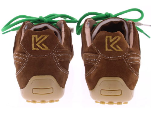 Cognac suede women's sneakers from Kirruna. These low-top sneakers feature two-tone laces and are crafted from soft suede with a removable footbed. This more refined sneaker is on trend and adds a charming, sporty touch to any outfit.