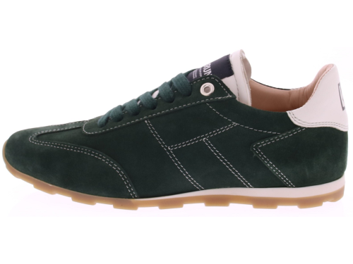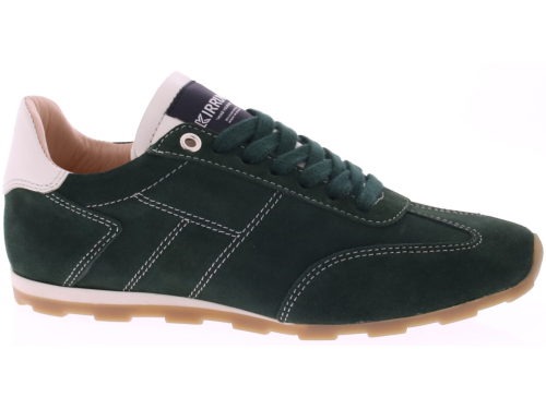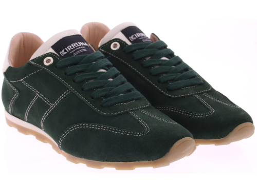 Dark green suede women's sneakers from Kirruna. These low-top sneakers feature green laces and are crafted from soft suede with a removable footbed. This more refined sneaker is on trend and adds a charming, sporty touch to any outfit.
