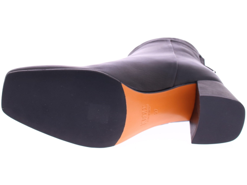 Black leather women's boot from Kroll. This stylish women's boot combines an elegant look with high-quality materials and refined finishes. The rectangular fit and nappa leather give these boots a chic, feminine look – ideal for both business and festive occasions. The boot features a convenient zipper at the back. The supple leather lining provides a luxurious feel. The approximately 5 cm heel offers an elegant lift without compromising comfort. The rubber sole provides grip and a comfortable walking experience.