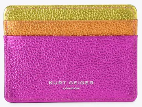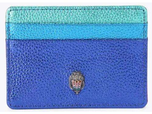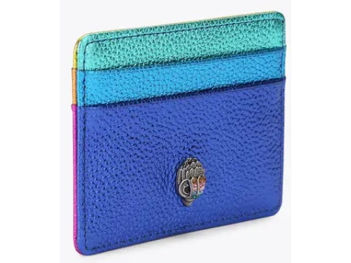 Multicoloured leather card holder for women by Kurt Geiger. This card holder is made of metallic leather in various colours. The antique silver eagle head is provided with rainbow-coloured crystals and black bead eyes. The card holder has room for eight cards. 8 cm (H), 10.5 (L) and 1 cm (D)