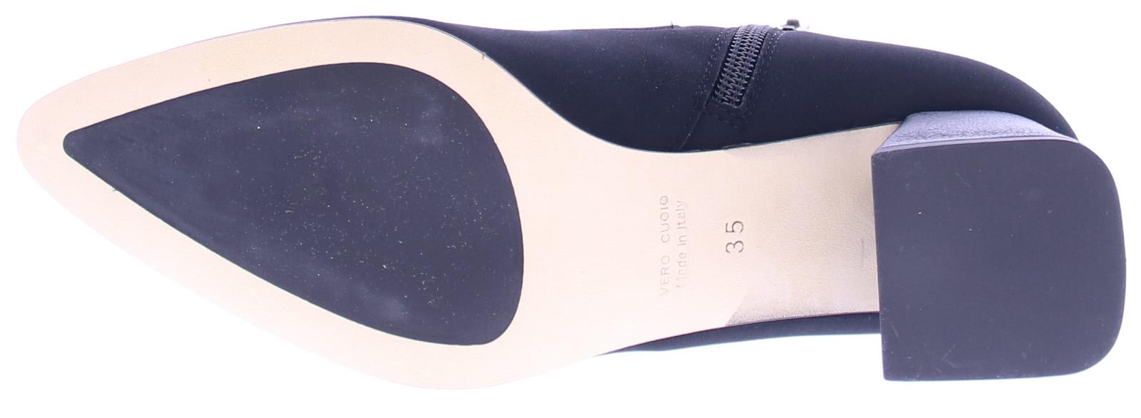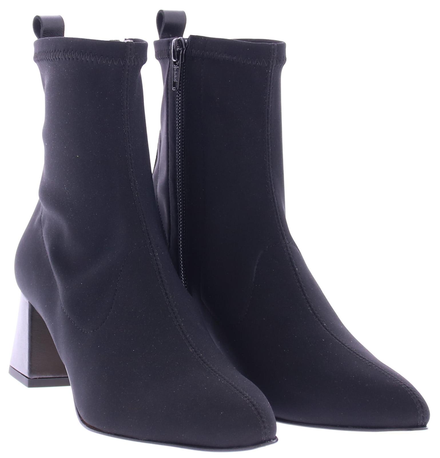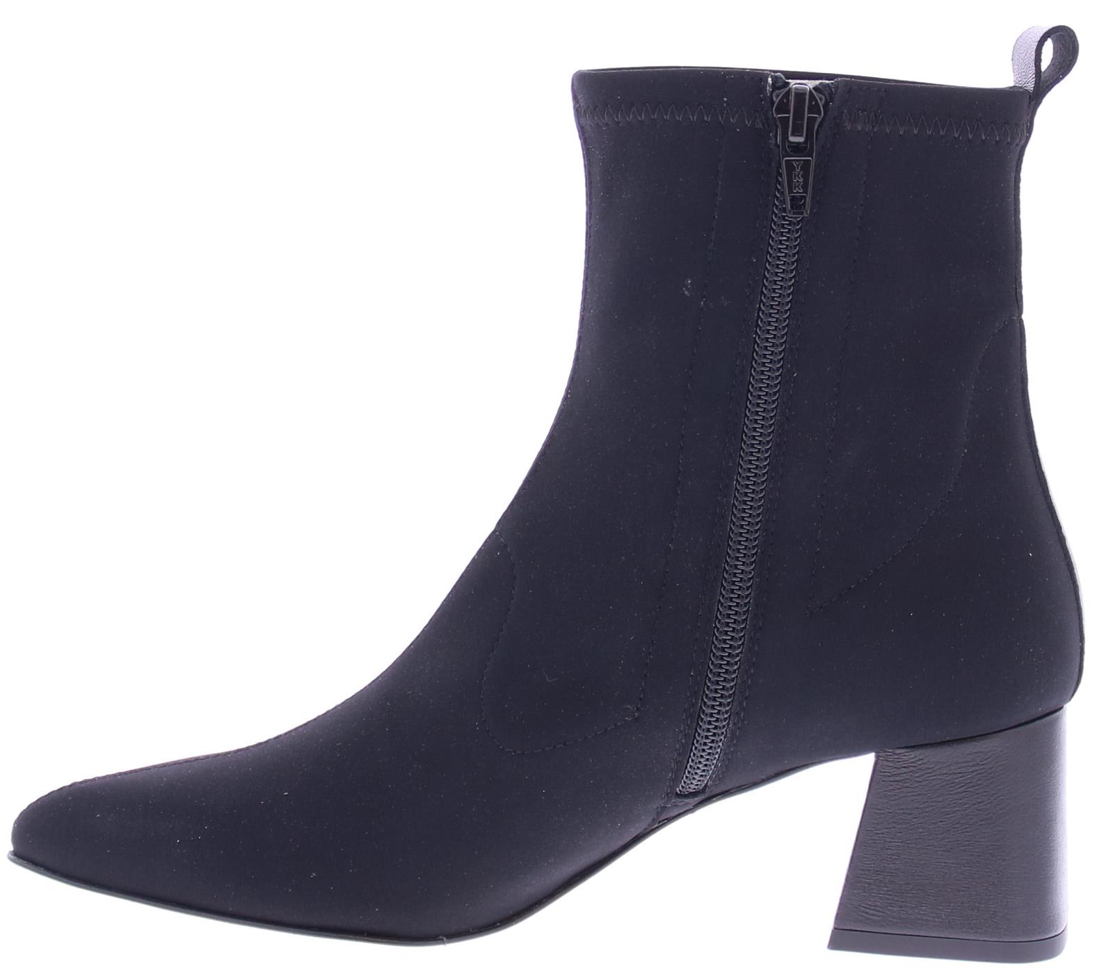 Black fabric women's stretch boot by Lilian. Made on a slightly more pointed last with a zipper on the side. The covered leather heel has a height of 6 cm. A beautiful basic boot with leather lining.