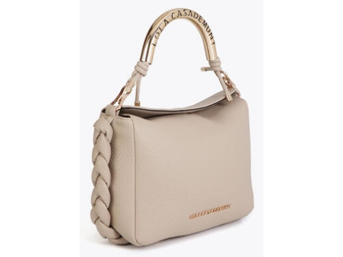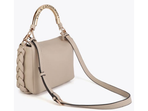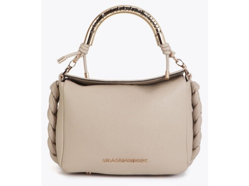 Cream-colored PU leather women's bag from Lola Casademunt. This elegant bag is crafted from supple leather and finished with a striking gold-tone metal handle with a logo detail. The braided accents on the side give the design a luxurious look. At 25 cm wide, 20 cm high, and 10 cm deep, this model offers ample space for everyday use. It can be carried as a handbag or with a shoulder strap. Discover other women's accessories from Lola Casademunt at Klijsen.