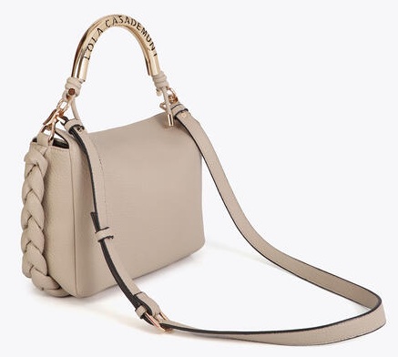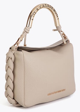 Cream-colored PU leather women's bag from Lola Casademunt. This elegant bag is crafted from supple leather and finished with a striking gold-tone metal handle with a logo detail. The braided accents on the side give the design a luxurious look. At 25 cm wide, 20 cm high, and 10 cm deep, this model offers ample space for everyday use. It can be carried as a handbag or with a shoulder strap. Discover other women's accessories from Lola Casademunt at Klijsen.
