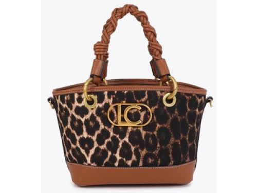 Brown PU leather women's bag from Lola Casademunt. This elegant leopard print bag is crafted from high-quality PU leather and finished with gold-tone details and the distinctive LC logo on the front. The sturdy handles and detachable shoulder strap allow you to carry the bag by hand or crossbody. The spacious main compartment closes with a zipper and offers ample space for your daily essentials. A stylish eye-catcher with a luxurious look.