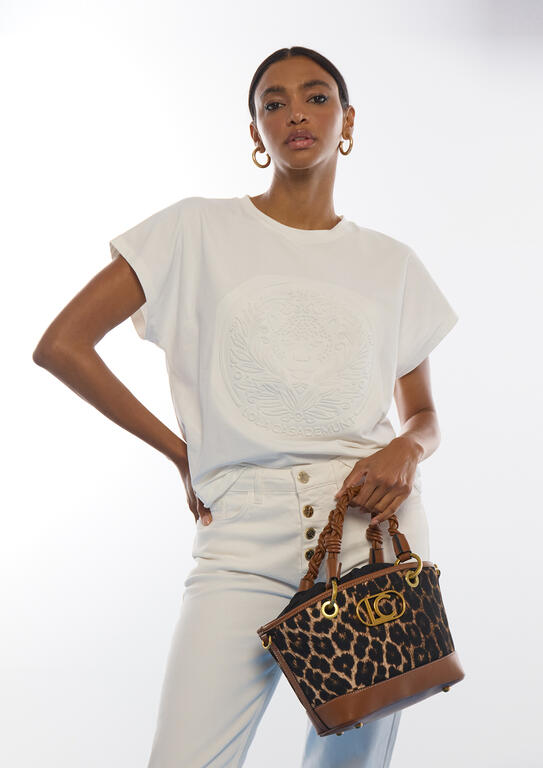 Brown PU leather women's bag from Lola Casademunt. This elegant leopard print bag is crafted from high-quality PU leather and finished with gold-tone details and the distinctive LC logo on the front. The sturdy handles and detachable shoulder strap allow you to carry the bag by hand or crossbody. The spacious main compartment closes with a zipper and offers ample space for your daily essentials. A stylish eye-catcher with a luxurious look.