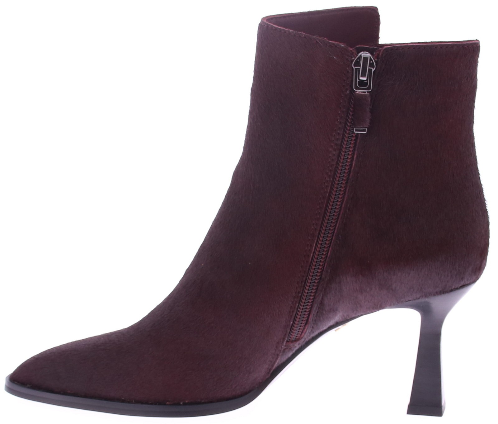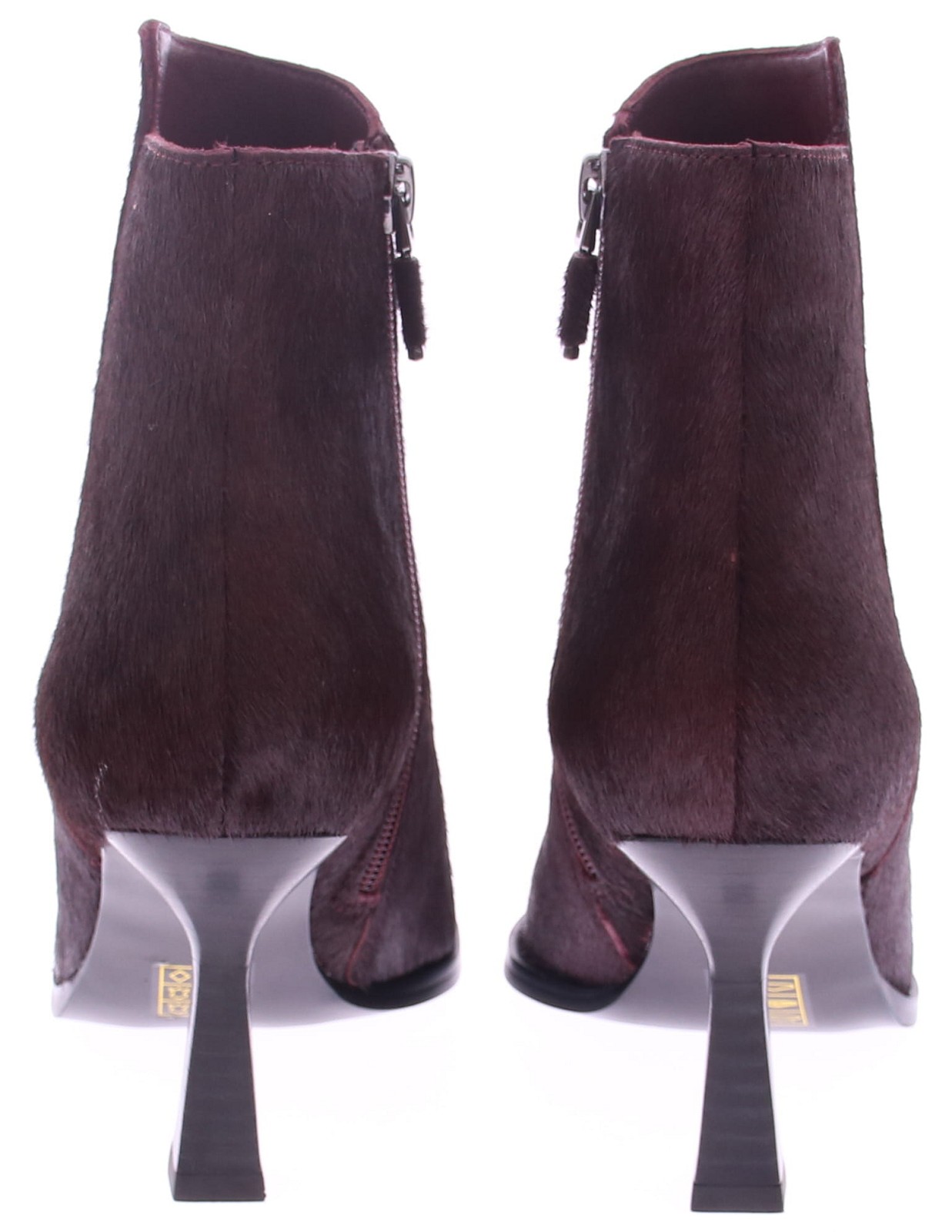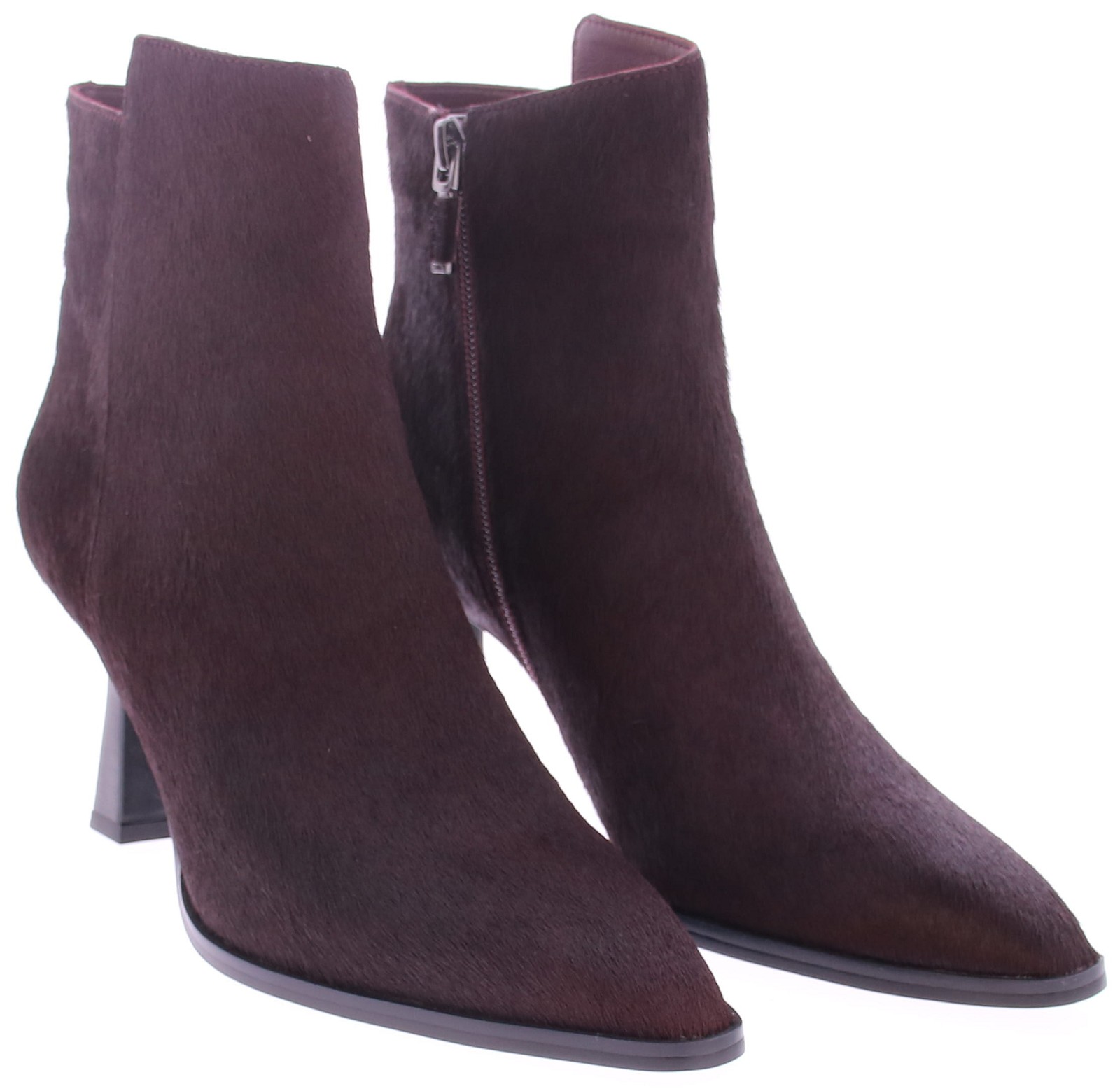 Bordeaux pony hair women's short boot from Lola Cruz. The use of pony hair gives the boot a unique texture, while the slightly pointed toe creates a refined, feminine look. An interior zipper makes it easy to put on and take off. The comfortable 8cm heel and rubber sole offer stability and comfort. A stylish choice for any occasion!
