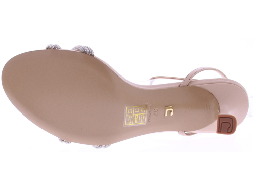 Beige leather women's sandal from Lola Cruz. Model 265Z14BK. This sandal features delicate straps with rhinestones and a 6 cm heel. It has an open toe and heel, a slim heel, and an adjustable ankle strap, ensuring a snug fit. The leather lining ensures comfortable wear. Pair it with a dress or skirt for a festive look. Discover other women's shoes from Lola Cruz at Klijsen.