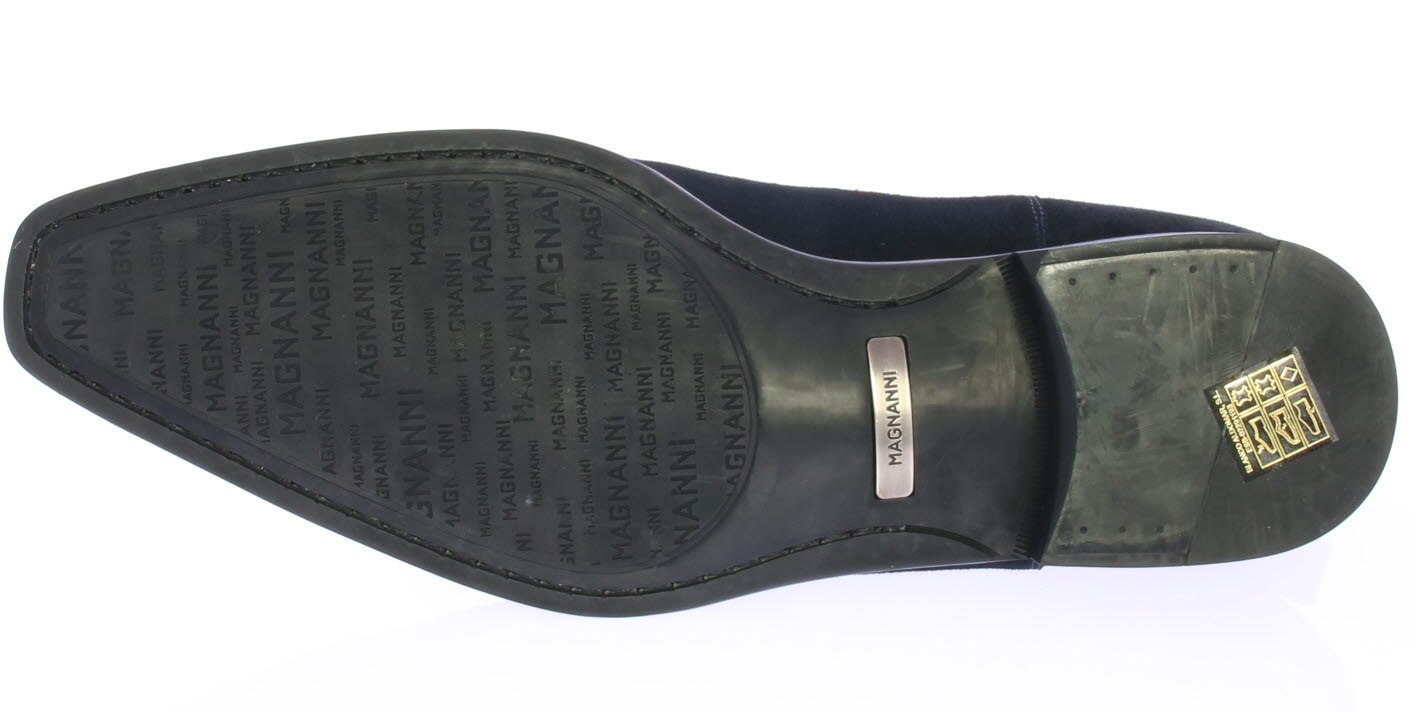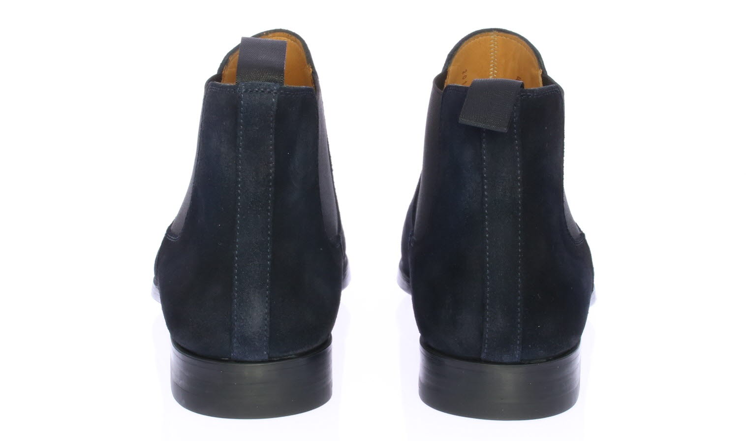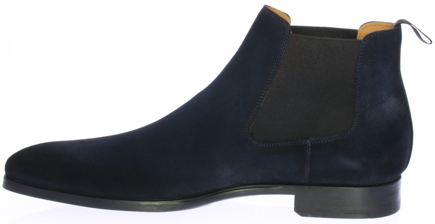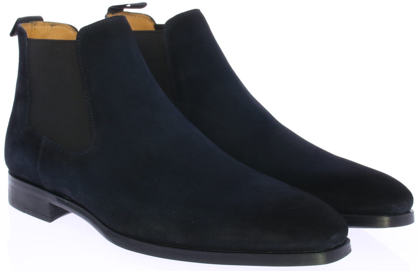 Dark blue suede men's chelsea boots by Magnanni. The boots have a rubber sole with leather lining and a pull tab at the back for easy entry. We also have a matching belt in our collection.
