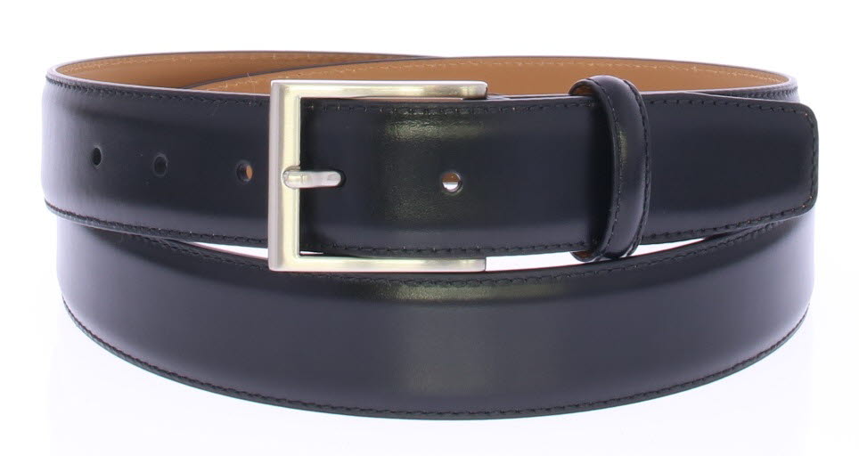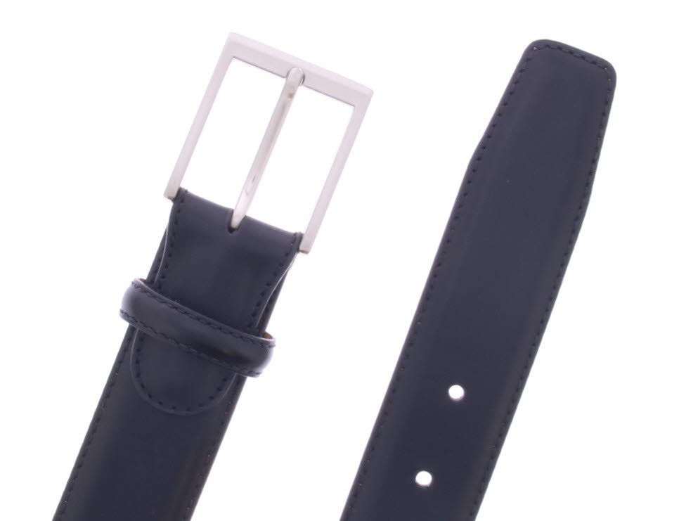 Men's belt by Magnanni in dark gray leather. The belt can be shortened at the buckle side.