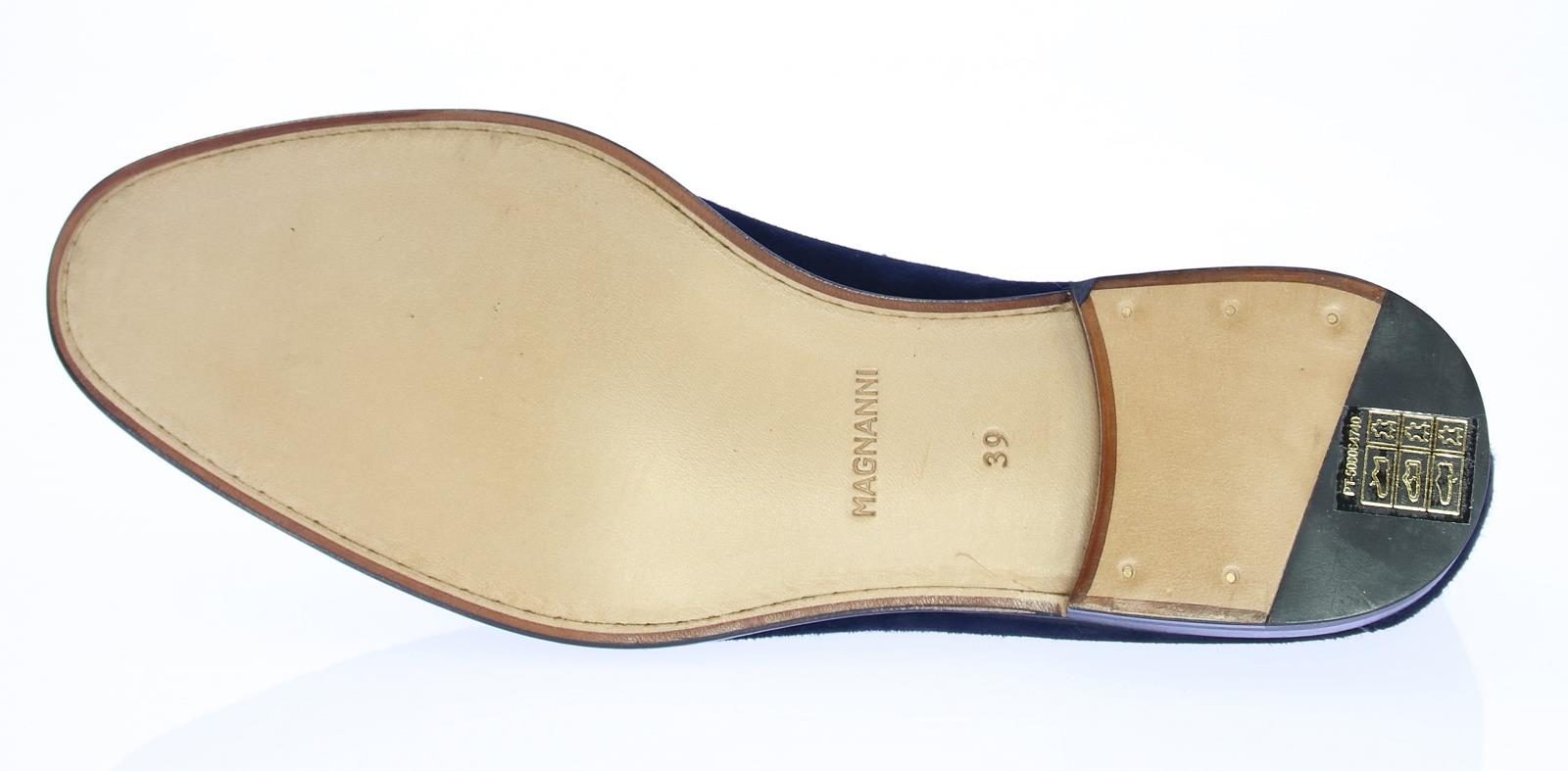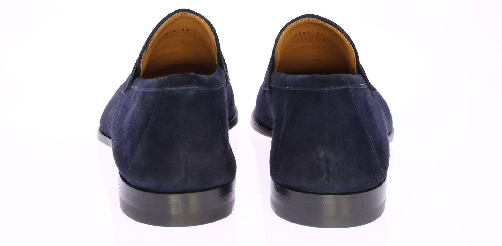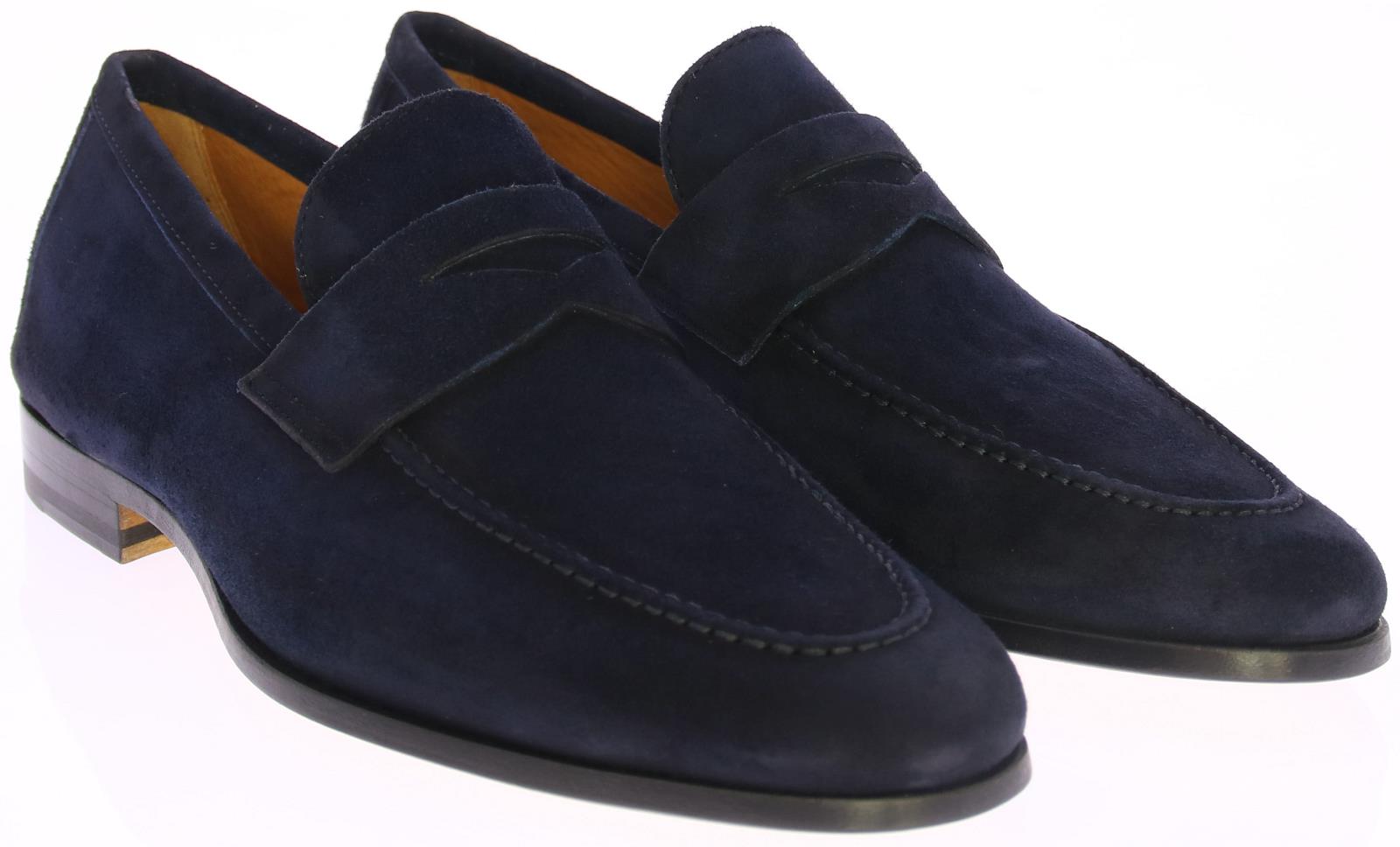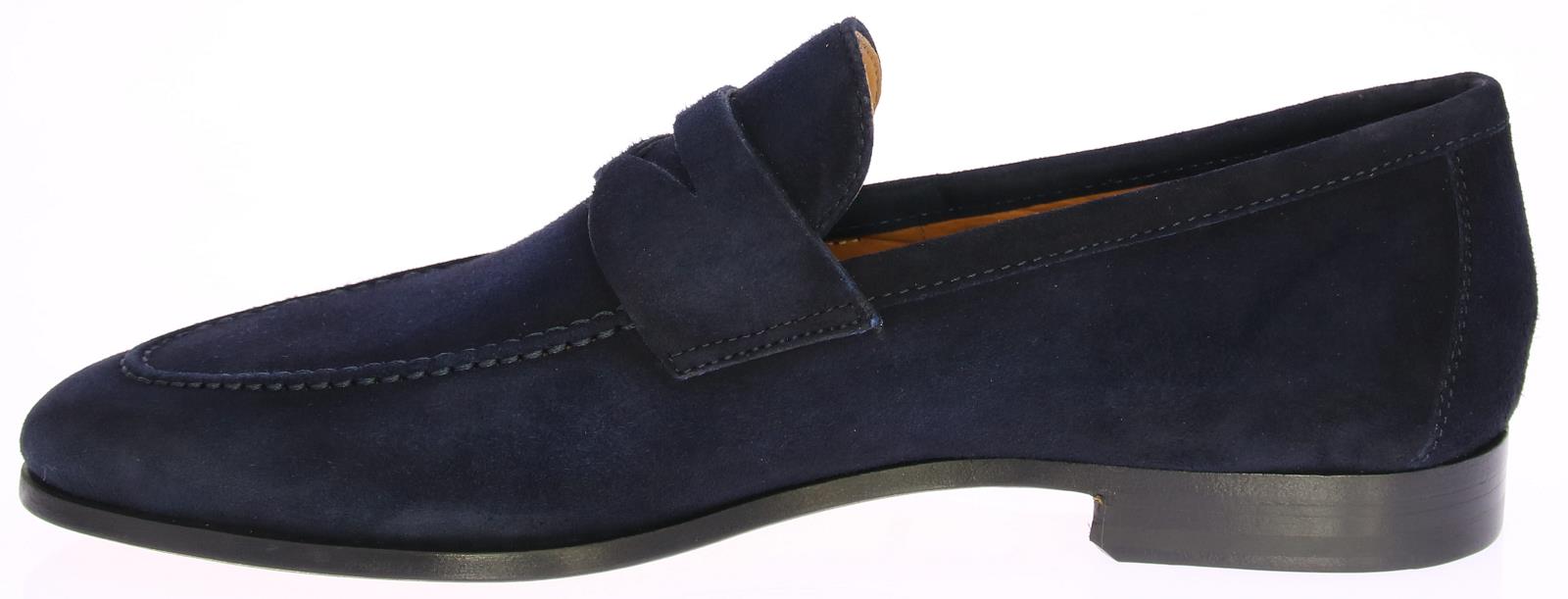 Dark blue suede loafer by Magnanni. This loafer comes on a leather sole and is leather lined.