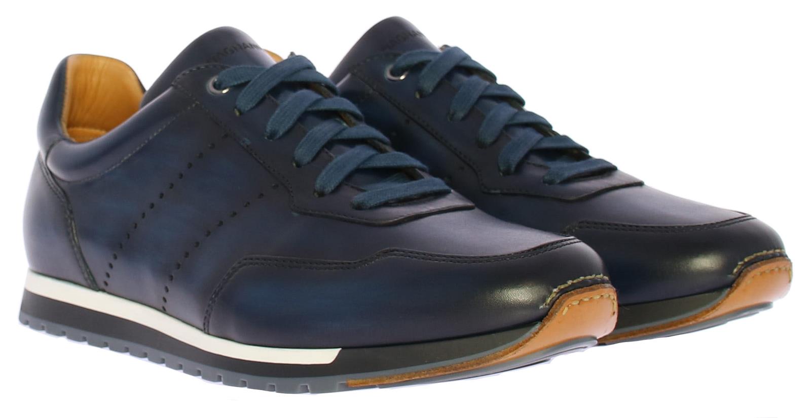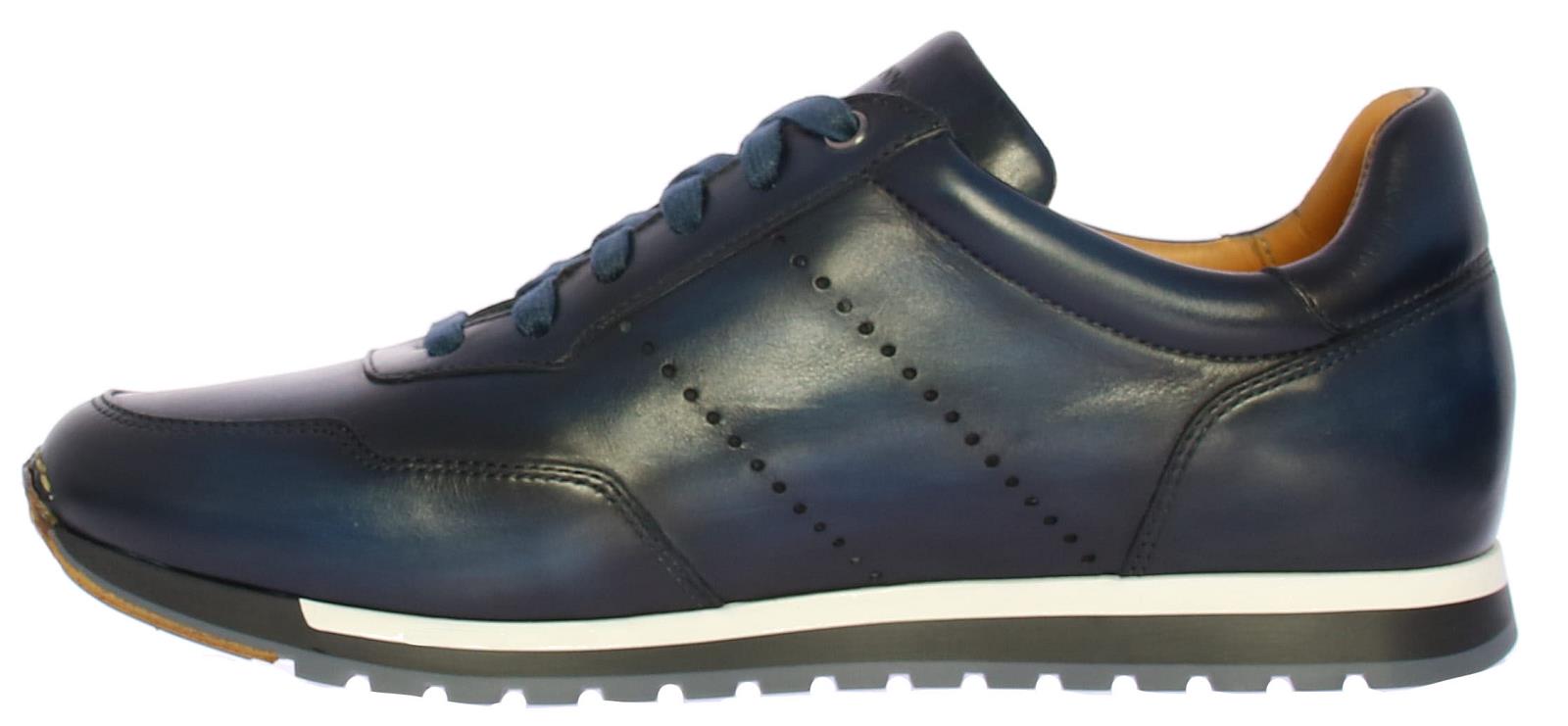 Dark blue suede/leather men's sneaker by Magnanni. This sneaker comes in dark blue leather with blue suede accents. The sneaker is leather lined and has a rubber sole. The insole is removable.