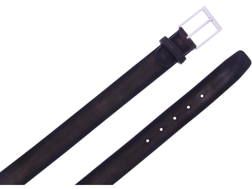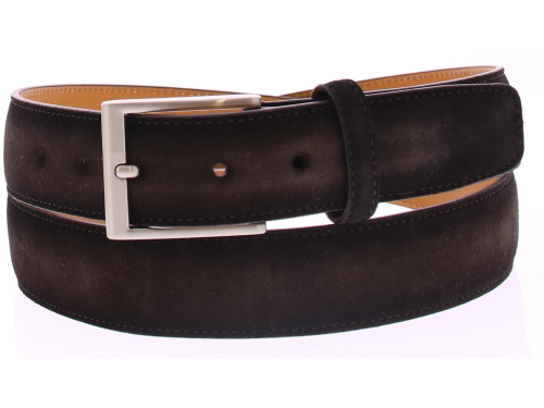 Dark brown suede men's belt by Magnanni. The timeless design adds a touch of class to any outfit, suitable for both formal and informal occasions. The belt is leather lined and can be shortened at the buckle side.