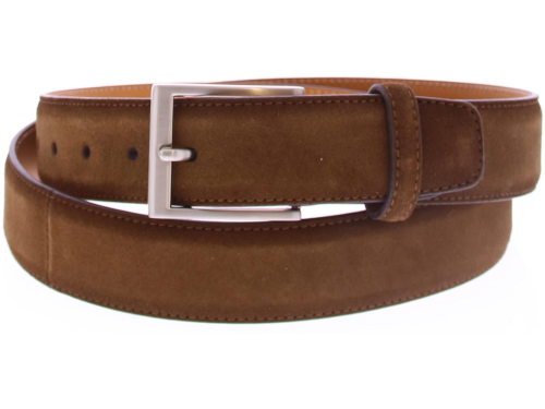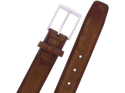 Men's belt by Magnanni made of suede and executed in the color Crostidifu cognac. The belt can be shortened on the buckle side.