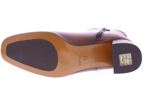 Cognac leather women's boots by Magnanni. These elegant women's boots are finished with a zipper, a block heel with a heel height of approximately 5 cm and a leather outsole with rubber insert. The boot is polished by hand and is fully leather lined.