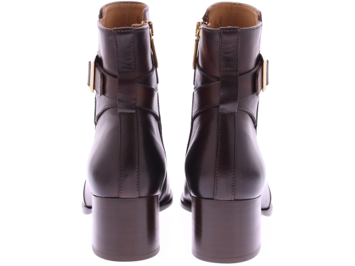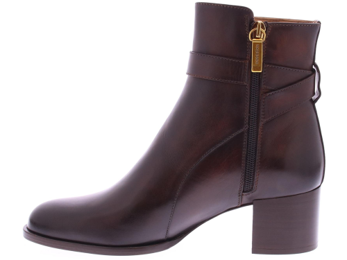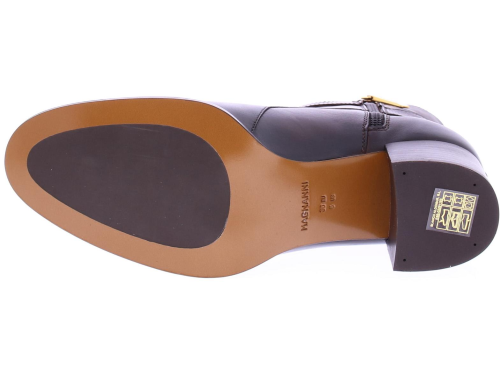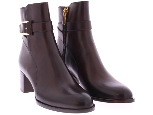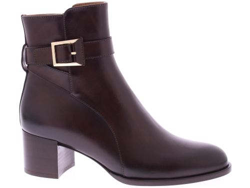Elegant dark brown short leather women's boot by Magnanni. The boot has a zipper on the inside for easy entry, a block heel with a heel height of approximately 5 cm and a leather outsole with rubber insert.