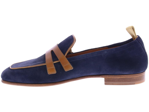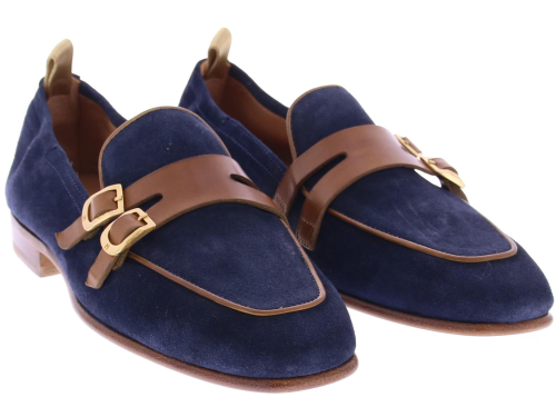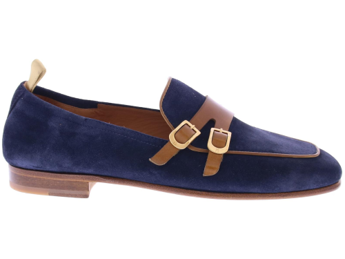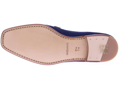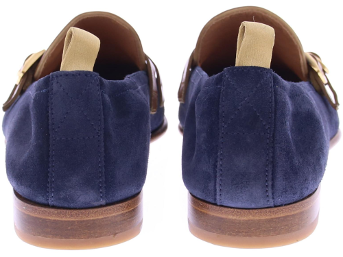 Dark blue suede women's slip-on from Magnanni. This women's slip-on from Magnanni is crafted from high-quality, soft suede. The shoe is stylishly finished with two delicate buckles on the instep and subtle cognac leather details. The heel also features elastic for a better fit and a perfect fit. Ideal for both casual and formal occasions!