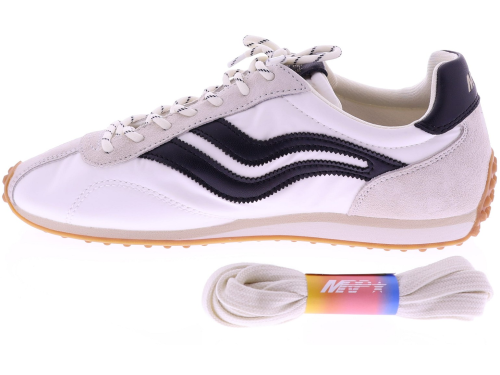 Black and white fabric and suede women's sneakers from Maripé, model Cartagena V.6. These sneakers have an airy feel thanks to the soft textile material combined with subtle suede details that create a sporty look. The interior is fully lined with fabric, which contributes to the breathable and comfortable feel. The removable footbed also makes the shoe suitable for your own personal insole. A light, flexible sneaker that effortlessly matches both a relaxed outfit and summer jeans. Discover other women's sneakers from Maripé at Klijsen.