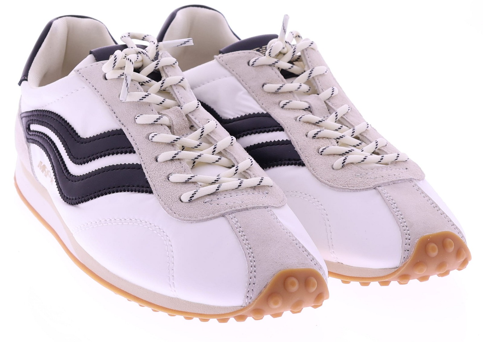 Black and white fabric and suede women's sneakers from Maripé, model Cartagena V.6. These sneakers have an airy feel thanks to the soft textile material combined with subtle suede details that create a sporty look. The interior is fully lined with fabric, which contributes to the breathable and comfortable feel. The removable footbed also makes the shoe suitable for your own personal insole. A light, flexible sneaker that effortlessly matches both a relaxed outfit and summer jeans. Discover other women's sneakers from Maripé at Klijsen.