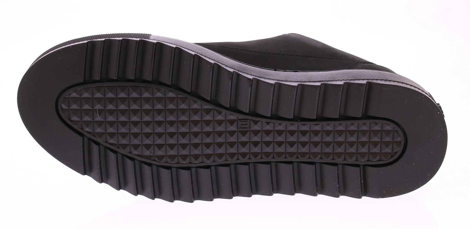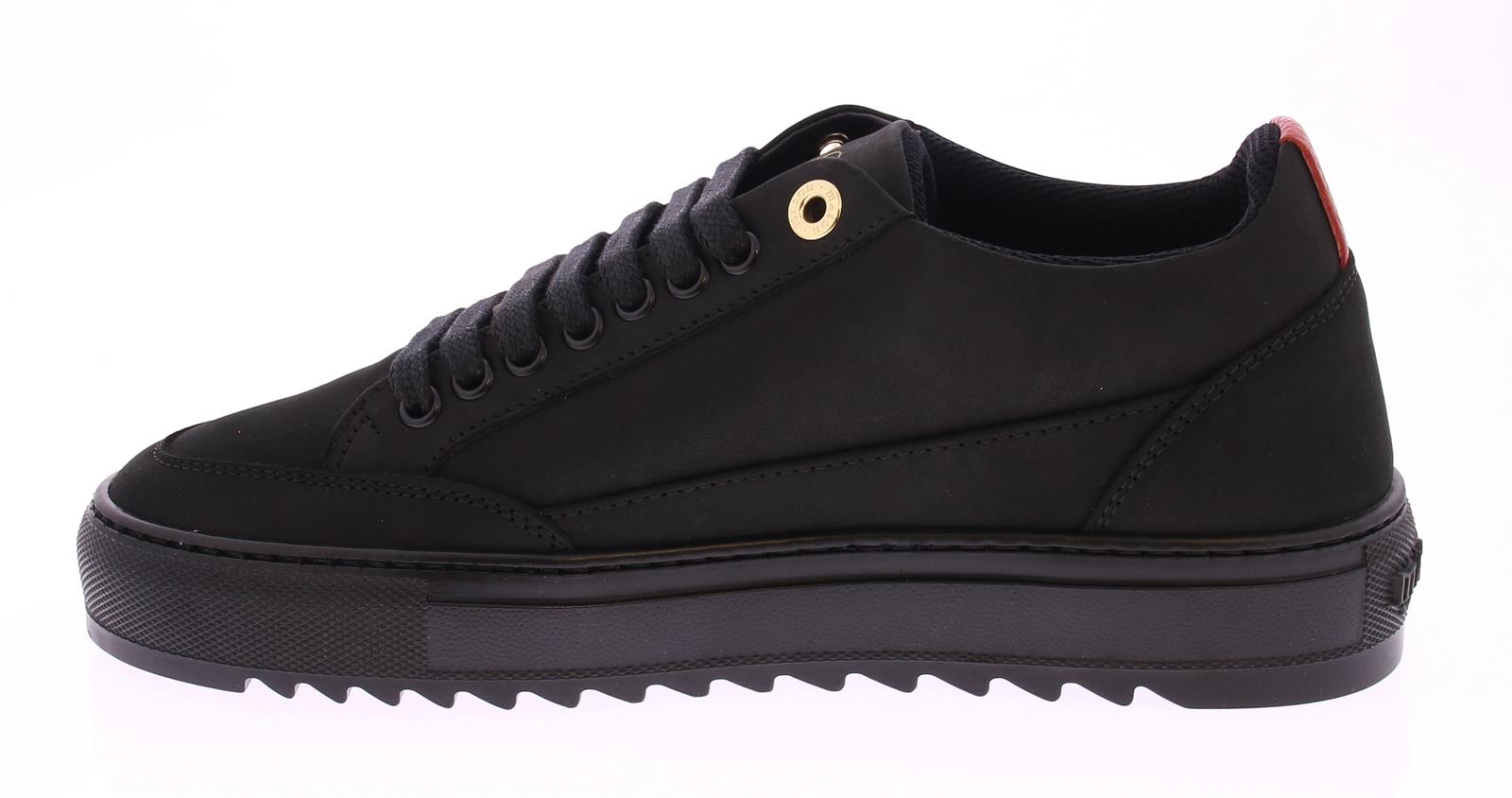 Black leather men's sneakers from Mason Garments. These ESS-1D sneakers have a leather upper and a soft mesh lining. The black sole is rubber.