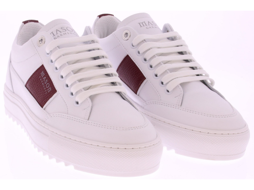 Elegant white sneakers with burgundy leather detailing, the MG52-8G from Maison Garments is a stylish and versatile sneaker, crafted from premium white leather with a deep burgundy side panel for a sophisticated pop of color. This shoe exudes minimalist class, with attention to detail and a high-quality finish. The combination of the smooth leather exterior and the contrasting color creates a modern yet timeless look. The interior is lined with breathable mesh and features a comfortable leather insole, ensuring long-lasting comfort. The sturdy white rubber cupsole with a tread makes the sneaker suitable for both everyday wear and casual-chic occasions. Main features: Model: MG52-8G Brand: Maison Garments Outer material: Premium white leather Detail: Bordeaux red side panel with Maison logo Lining: Breathable mesh Insole: Luxurious leather for extra comfort and durability Sole: White rubber cupsole with grip profile Closure: White laces, classic fit Color: White with burgundy accents Style: Clean, casual chic, modern with a twist The MG52-8G is the perfect sneaker for those who love a subtle pop of color and an elegant, sleek finish. Order now and make this stylish all-rounder a permanent fixture in your wardrobe.