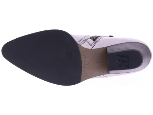 Silver leather women's boot by Paul Green. This short boot features a zipper and an elastic insert for easy on and off. The slanted heel has a height of 4 cm, and the sole is made of rubber.