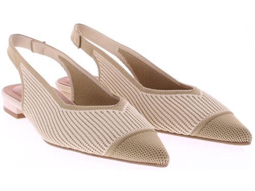 Beige fabric women's slingback pumps from Miss Elastic, model Marni 75051-65-3V. This airy and exceptionally flexible pump is made of ECO-elastic fabric, with the front subtly lined with vegan leather for extra comfort and a beautiful shape. The slingback with elastic insert fits smoothly around the heel, while the elegant 2 cm heel height provides a light, feminine lift. A modern and versatile pump that looks great with both summer trousers and an elegant dress. Discover other women's pumps from Miss Elastic at Klijsen.