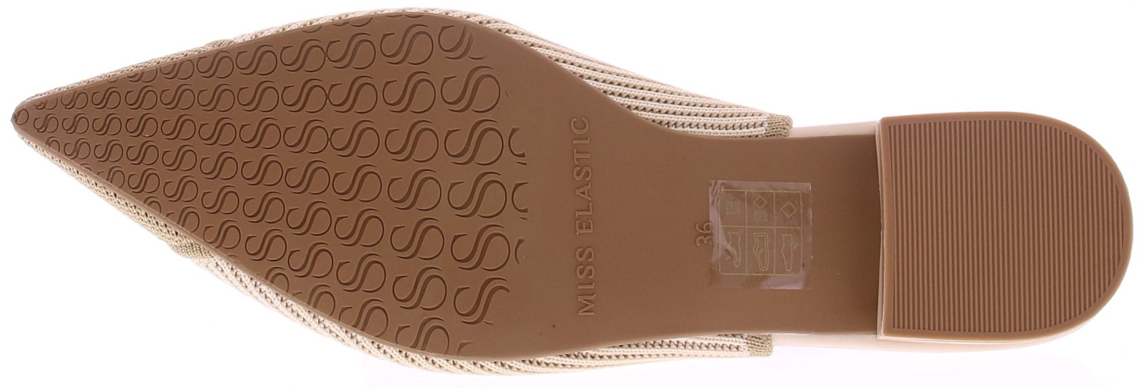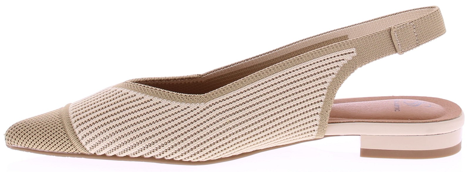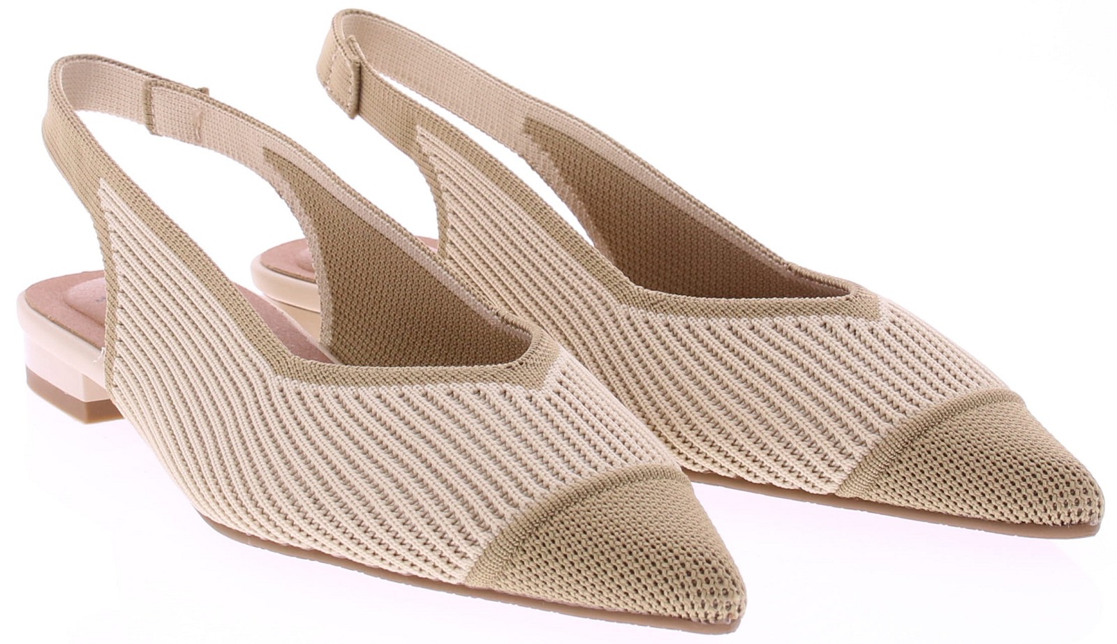 Beige fabric women's slingback pumps from Miss Elastic, model Marni 75051-65-3V. This airy and exceptionally flexible pump is made of ECO-elastic fabric, with the front subtly lined with vegan leather for extra comfort and a beautiful shape. The slingback with elastic insert fits smoothly around the heel, while the elegant 2 cm heel height provides a light, feminine lift. A modern and versatile pump that looks great with both summer trousers and an elegant dress. Discover other women's pumps from Miss Elastic at Klijsen.
